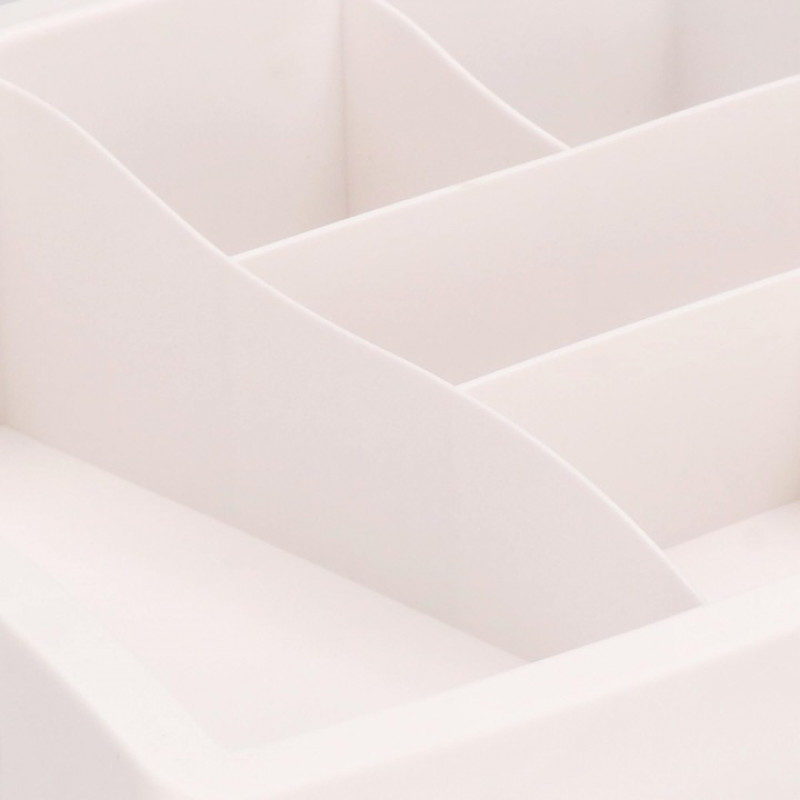 Pentru depozitarea suruburilor, cuielor, piulitelor si suruburilor Cutia este realizata in intregime din plastic. Materialul este foarte usor de pastrat curat, in cazul in care va varsati pudra sau bronzul, trebuie doar sa stergeti sertarele cu o carpa umeda. Designul are sertare si pereti transparenti, astfel incat sa aveti intotdeauna o vedere asupra accesoriilor depozitate. Chiar in partea superioara a organizatorului exista compartimente suplimentare in care puteti depozita accesorii mai mari, cum ar fi parfumurile. Designul cutiei a fost gandit cu atentie pentru a maximiza cantitatea de depozitare.