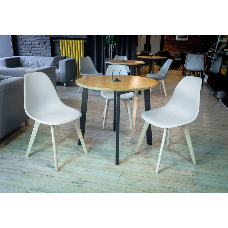Scaun din colectia ADA Scaunul cu spatar rotunjit este fabricat din plastic durabil - polipropilena, iar picioarele scaunului sunt din lemn de fag durabil, care va asigura o mare stabilitate. SPECIFICATII PRODUS