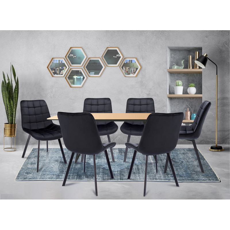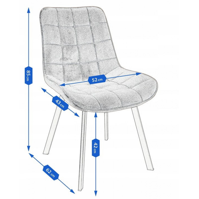 Greutate maxima suportata: 130 kg Se distinge printr-un sezut de catifea moale, matlasat, care imbratiseaza corpul. Tesatura este delicata la atingere. Picioarele inalte si solide din metal sunt responsabile de stabilitatea perfecta si de rezistenta in timp. Scaunul se va integra intr-un ambient cu decor modern, fie ca vorbim despre o zona de asteptare, un living sau chiar o bucatarie. De asemenea, acest scaun are o rezistenta sporita la zgarieturi sau deterioriari, astfel ca este potrivit in orice casa, inclusiv cele in care exista animale de companie.