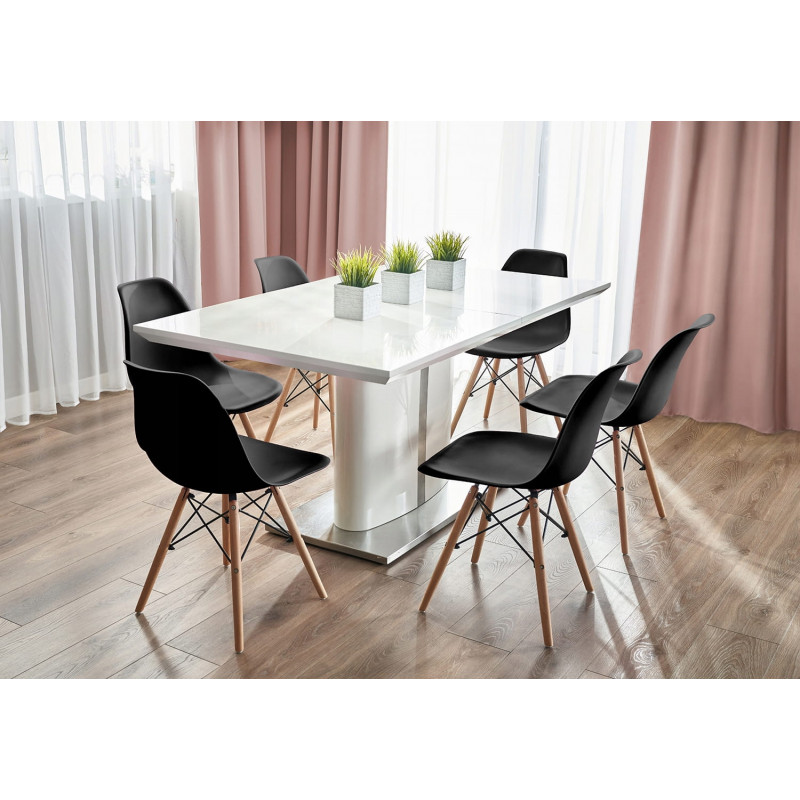 Scaun din colectia EVA Unul dintre cele mai faimoase scaune din istoria designului, scaunul EVA este piesa centrala a oricarei incaperi amenajate in stil scandinav.Sezutul este o polipropilena perfect modelata, iar picioarele sunt realizate din lemn de fag natural, masiv - oferind rezistenta si stabilitate in timpul utilizarii, in plus, imbinarile negre intaresc intregul cadru si sunt, de asemenea, decorative. SPECIFICATII PRODUS