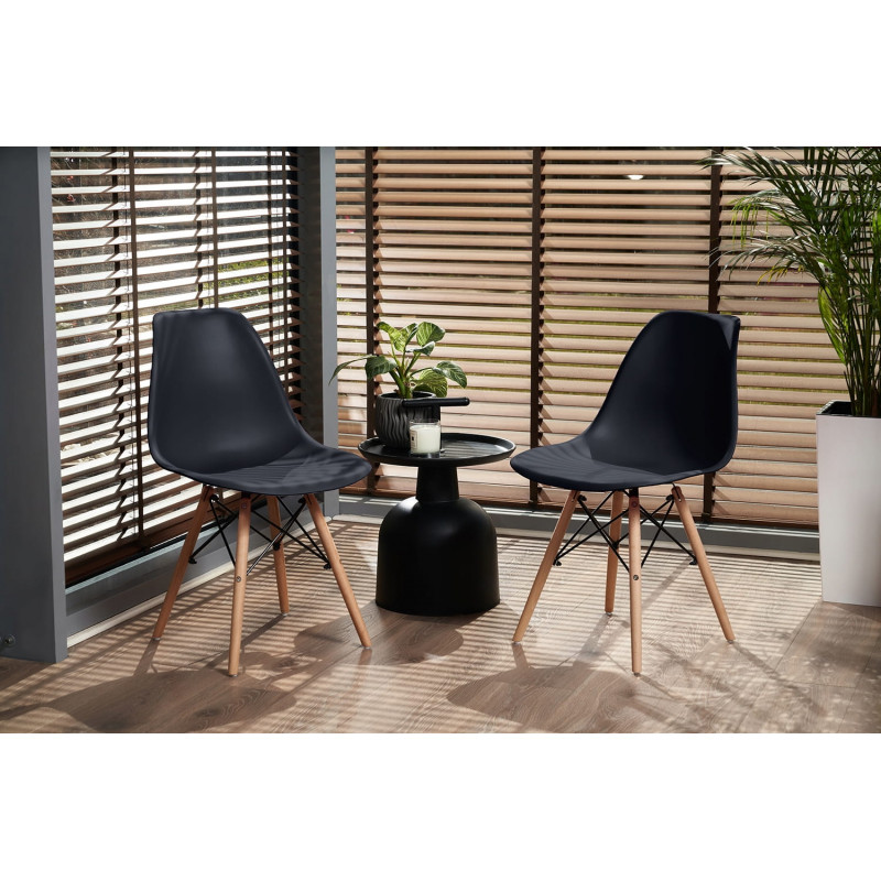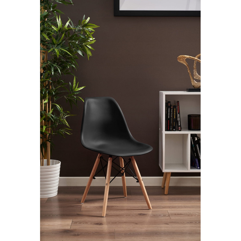 Numar produse incluse in set: 1 bucata Culoare negru Scaun polipropilena Picioare lemn de fag Inaltimea mobilierului 81 cm Latimea mobilierului 46 cm Adancimea mobilierului 52 cm Inaltimea scaunului 41 cm Latimea scaunului 46 cm Adancimea scaunului 40 cm Sarcina maxima 100 kg Asamblare Pentru autoasamblare