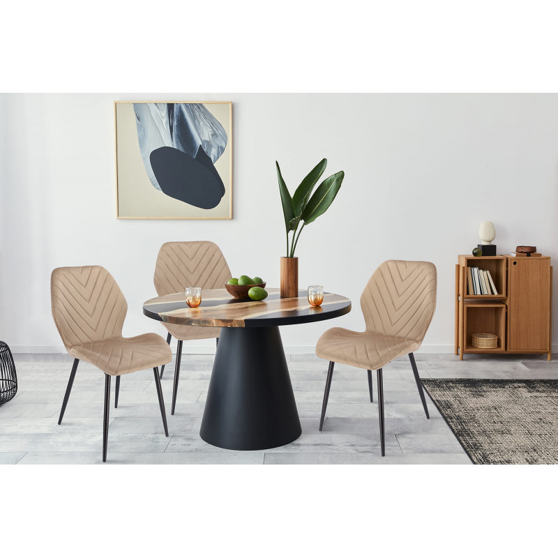 Numar produse incluse in set: 2 bucati Se distinge printr-un sezut moale, matlasat, care asigura confortul. Tapiteria din catifea cu tesatura ofera un look elegant si este foarte fina la atingere. Picioarele inalte si solide din metal sunt responsabile de stabilitatea perfecta si de rezistenta in timp. Scaunul se va integra intr-un ambient cu decor modern, fie ca vorbim despre o zona de asteptare, un living sau chiar o bucatarie. De asemenea, acest scaun are o rezistenta sporita la zgarieturi sau deterioriari, astfel ca este potrivit in orice casa, inclusiv cele in care exista animale de companie.