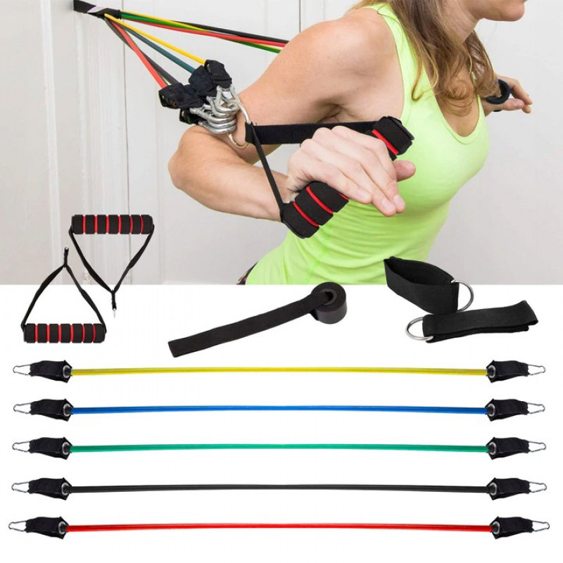 Acest set de 5 expansoare permite un antrenament cuprinzator pentru toate partile musculare, oriunde v-ati afla.Setul este prevazut cu 5 benzi de cauciuc cu rezistenta diferita, 2 manere de mana, 2 manere de glezna, un maner de usa si o husa de transport. Fiecare expander difera nu numai prin rezistenta, ci si prin culoare si diametru, permitandu-va sa adaugati si mai multa varietate la antrenamentul dumneavoastra. In timp ce posibilitatea de atasare diferentiata va permite sa exersati fiecare parte a muschilor.