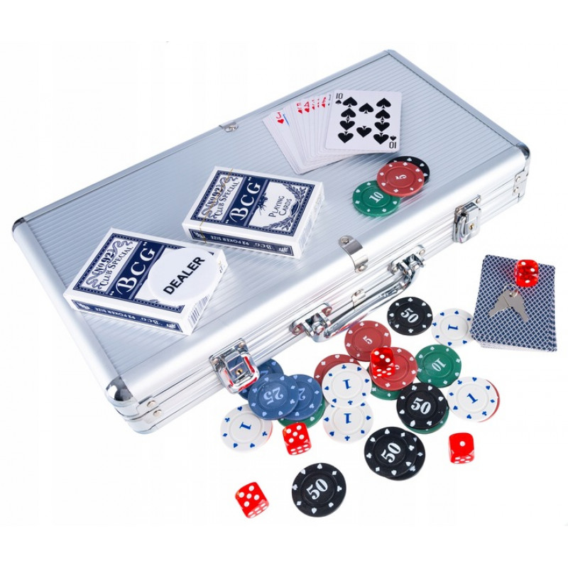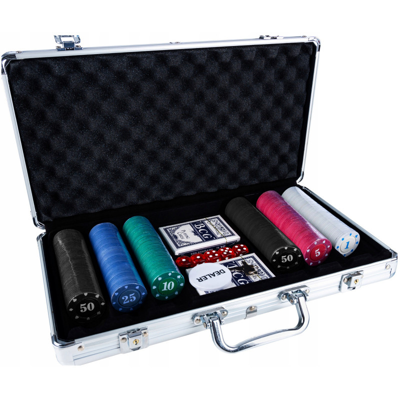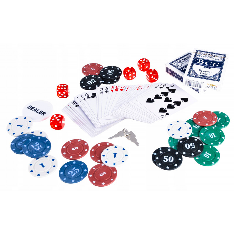 chei pentru inchiderea casetei Set de poker sau de zaruri profesional, solid. Cu doua pachete de carti, un set de zaruri si 300 de jetoane de joc, ambalate intr-o cutie eleganta.Include toate elementele necesare pentru a juca poker, craps sau blackjack: doua pachete de carti, un set de zaruri, jetonul dealerului - DEALER.Capacul cutiei a fost prevazut cu un burete negru, care preseaza continutul cutiei si impiedica deplasarea elementelor in timpul transportului setului. Setul este ambalat intr-o valiza foarte rezistenta, cu incuietoare. Valiza are o adancitura speciala in interior pentru o ambalare usoara a tuturor elementelor setului. In plus fata de extrudare, protectia este un burete moale sub capac - acest lucru asigura stabilitatea tuturor elementelor in timpul transportului si impiedica varsarea si amestecarea jetoanelor. Toate elementele setului nostru au fost realizate din materiale de cea mai inalta calitate - cartile si jetoanele nu se sterg in timpul jocului si asigura o utilizare fara probleme pe termen lung.Setul include un jeton dealer, care desemneaza persoana care da cartile. Jetoanele se misca in sensul acelor de ceasornic in timpul jocului. O rezerva de jetoane de inalta calitate asigura un joc de lunga durata si captivant. Jetoanele sunt disponibile in 5 cupiuri diferite: 1, 5, 10, 25, 50.Datorita dimensiunii sale compacte si a husei de transport robuste, este ideal pentru a fi luat in deplasare. Orice iubitor de jocuri de carti va aprecia setul de poker compact si bine echipat.Setul de poker este o idee excelenta de cadou pentru orice pasionat de jocuri de carti - excelent pentru amatori si profesionisti.