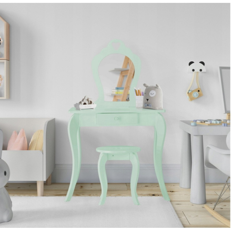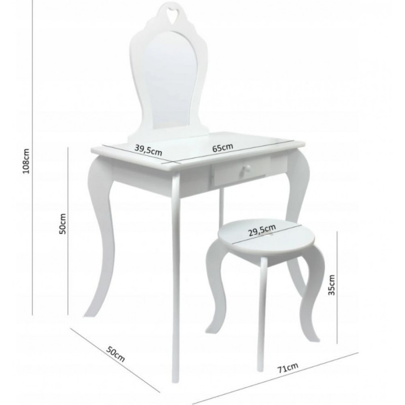 Mobilier pentru autoasamblare *Articolele prezentate in imagine (bijuterii, cosmetice) nu fac parte din masa de toaleta. Viseaza si micuta ta la propria masuta de toaleta? Masuta noastra de toaleta pentru fete este solutia perfecta pentru micile printese. Cu siguranta va satisface cerintele celor mai exigente domnisoare. Ideal pentru camera unui copil. De asemenea, ca un decor interesant. Masuta de toaleta va fi cu siguranta pe placul oricarei fetite care adora sa se imbrace si sa-si imite mama atunci cand se machiaza.