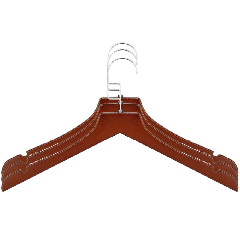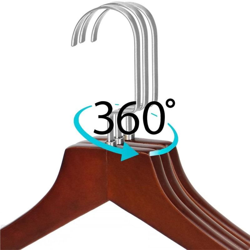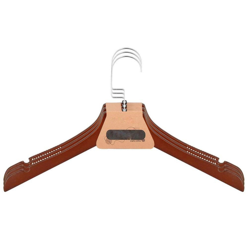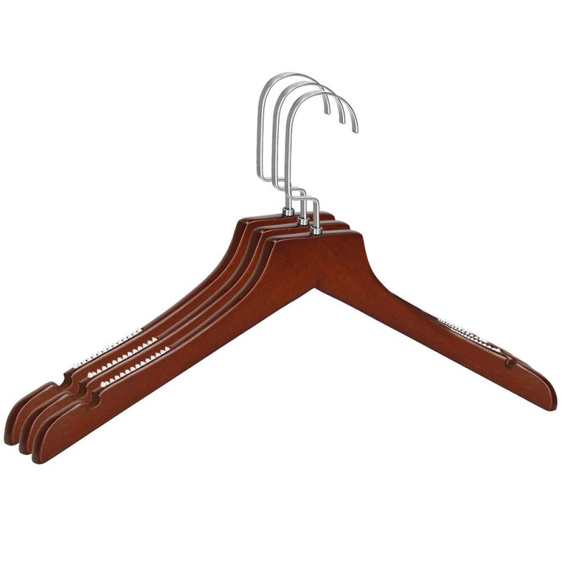 Numar de piese pe set: 3 bucati Acest set de umerase permit aranjarea perfecta a hainelor in dulap, fara riscul de a se increti. Forma aerodinamica a umerasului si grosimea acestuia asigura mentinerea sigura a hainelor la locul lor. Un avantaj suplimentar al produsului sunt elementele antiderapante si adanciturile speciale de pe partile laterale, care impiedica alunecarea bluzelor, camasilor, jachetelor si rochiilor. Carligul metalic, avand posibilitatea de a se roti la 360 de grade, faciliteaza agatarea umerasului in diverse locuri. Combinatia dintre forma clasica si forma usor geometrica a carligului va fi perfecta atat pentru aranjamentele clasice, cat si pentru cele mai moderne. Umerasele din lemn au un aspect frumos, fiind un decor imens al oricarui dulap, vestiar sau dressing.