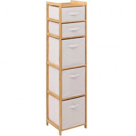 Scurta descriere Etajera inalta Tidy Box de la 5 Five este fabricata integral din bambus, un material natural, durabil si estetic. Cu cele 5 rafturi spatioase, aceasta piesa este ideala pentru baie, dressing sau hol, oferind o solutie eficienta de organizare pe verticala. Culoarea maro natur adauga un accent cald si organic in orice interior.