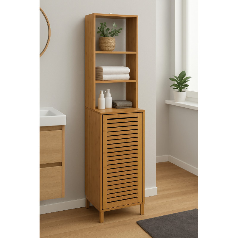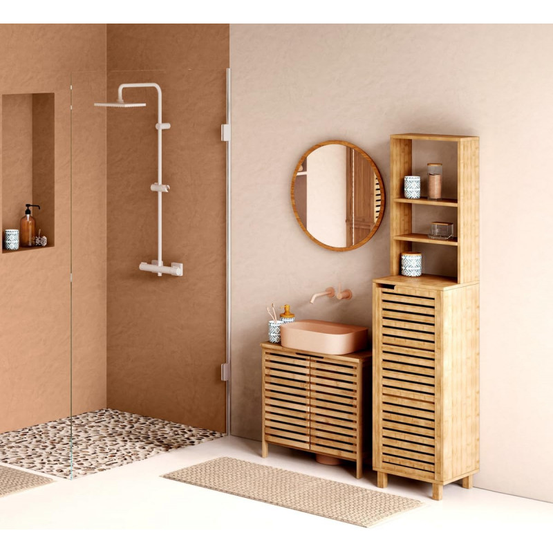 Scurta descriere Etajera Sicela de la 5 Five este o piesa functionala din bambus natural, ideala pentru baie, hol sau living. Cele 5 rafturi ofera spatiu generos pentru organizare, iar designul vertical economiseste spatiu, pastrand un aspect aerisit si elegant.