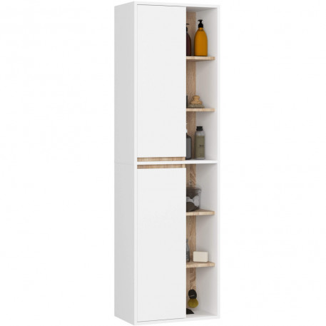 Scurta descriere: Dulapul suspendat pentru baie Vami W50 imbina designul modern cu functionalitatea inteligenta. Datorita montajului pe perete, economiseste spatiu in baie si asigura o organizare eficienta. Configuratia cu doua usi si rafturi multiple ofera loc pentru prosoape, cosmetice si accesorii, mentinand ordinea in incapere. Combinatia de alb si stejar sonoma adauga luminozitate si eleganta naturala interiorului.