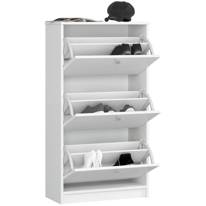 Scurta descriere Pantofarul alb cu trei usi rabatabile ofera spatiu generos pentru organizarea incaltamintei datorita cosurilor duble de depozitare. Constructia din pal laminat rezistent si canturile ABS asigura durabilitate si rezistenta la uzura, iar designul complet alb lumineaza vizual holul si se potriveste in decoruri moderne sau clasice. Formatul vertical permite economisirea spatiului, fiind ideal pentru incaperi inguste.