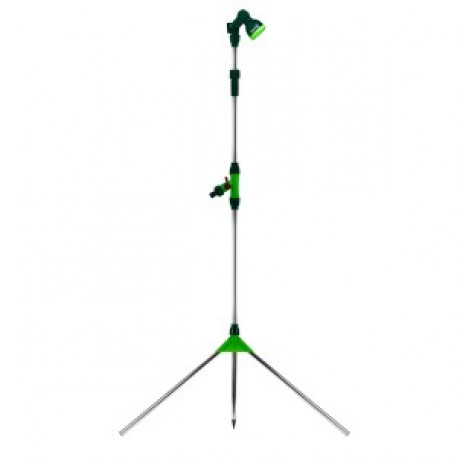 Dusul de gradina 15G685 de la VERTO are o blocare a debitului de apa cu o supapa si o conexiune universala pentru conectarea unui furtun care se termina intr-un conector universal. Constructie stabila din aluminiu si elemente fabricate din ABS si PP. Dusul de gradina are o inaltime totala reglabila de la 160 la 230 cm. Suportul de dus are o tepusa pentru a-l stabiliza in sol. Datorita capului mobil la 180 de grade, este posibila utilizarea functiei de dus in orice plan.