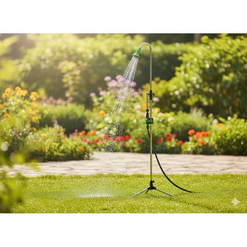 Scurta descriere Dusul de gradina pe trepied este o solutie practica pentru racorire in zilele calduroase de vara. Datorita constructiei stabile pe trepied, poate fi amplasat usor oriunde in gradina, pe terasa sau langa piscina. Conectarea simpla la furtunul de gradina si reglarea inaltimii ofera confort si utilizare rapida pentru intreaga familie.