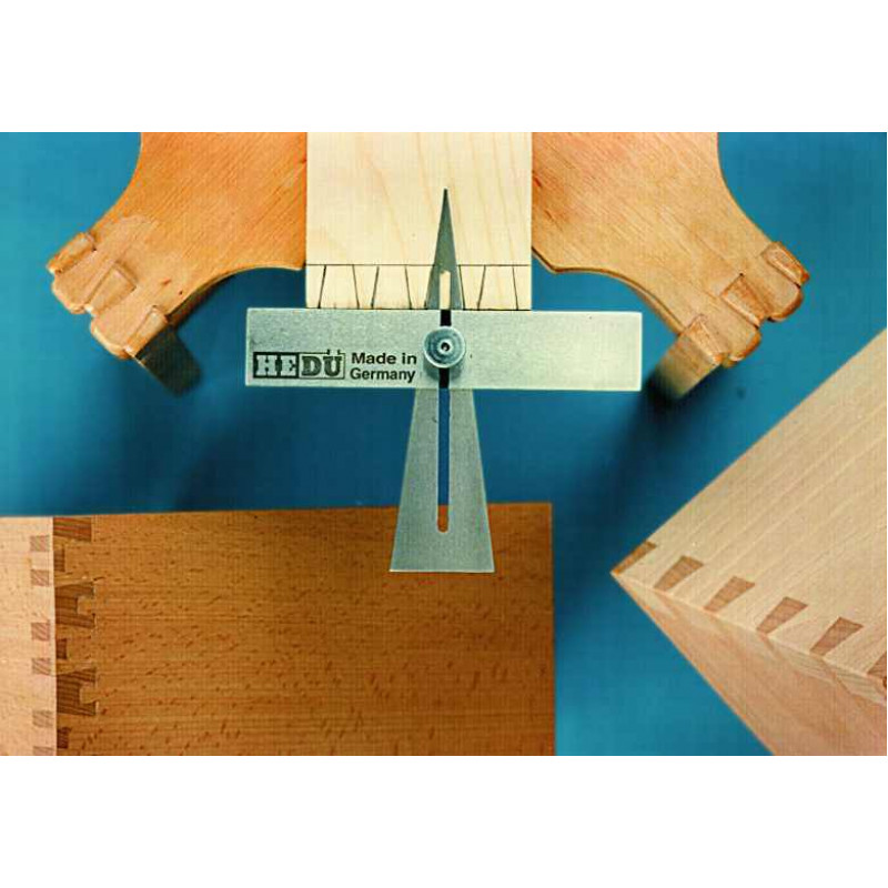 Limba are o inclinatie de 1:8 si este reglabila pe latime intre 6 si 40 mm. Echerul coada de randunica din otel inoxidabil e special pentru marcarea tesiturilor pentru conuri sau pâlnii.