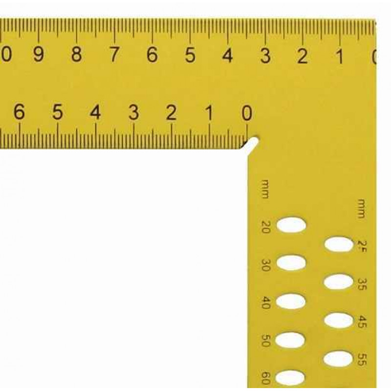 Echerul de dulgherie sudat continuu este fabricat din oțel inoxidabil. Prin acoperirea cu pulbere de culoare galbenă luminoasă, scala milimetrică de pe latura lungă este ușor de citit, fără ca citirea scalei să fie perturbată de reflexia luminii.