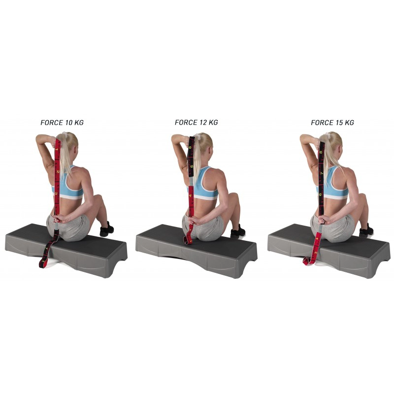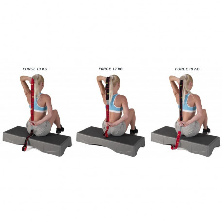 Elastiband 3 Forces este o banda elastica ce permite antrenarea grupelor principale de muschi (brate, spate, pectorali, abdomen, coapse si fese) la trei intensitati diferite (10, 12 si 15 kg).Dimensiune produs: 95 x 4 cm.Forta de rezistenta difera in functie de buclele utilizate in exercitii, de la 10 la 15 kg.Alegeti puterea exercitiului in functie de numarul scris pe maner.Culoare: negru cu rosu.* Poliester * Poliamida Producator: Sveltus.A se spala la maxim 30 grade Celsius.*Produsul nu contine ambalaj cutie, poster sau DVD.