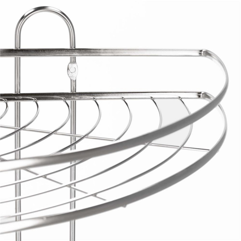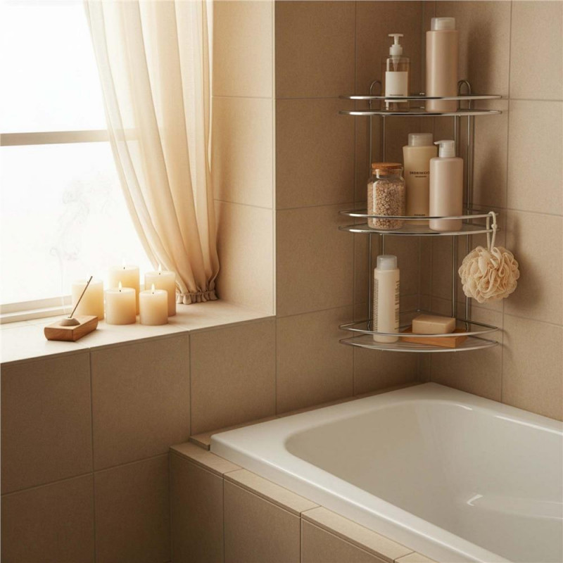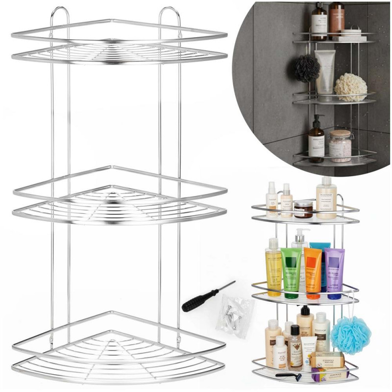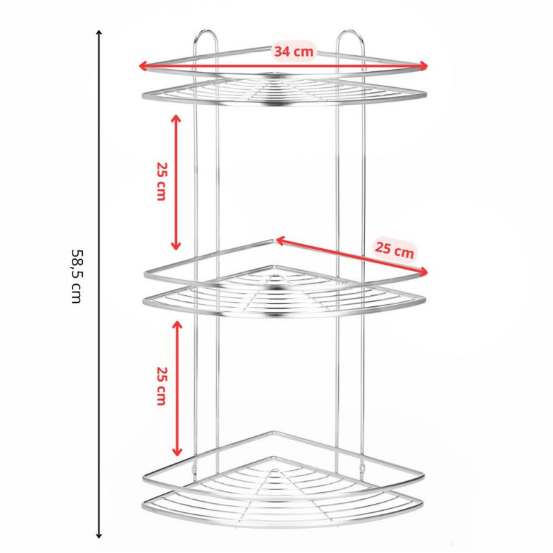 Scurta descriere: Etajera de colt cu trei polite, realizata din otel inoxidabil, conceputa pentru organizarea eficienta a spatiului. Se monteaza pe perete si este potrivita pentru baie, bucatarie sau alte zone unde este necesara depozitarea pe verticala.