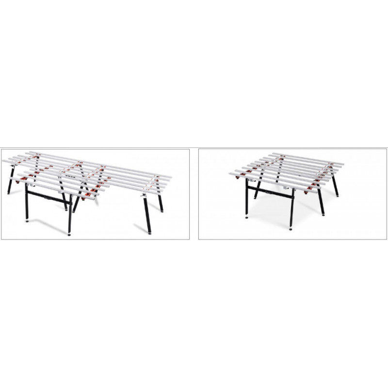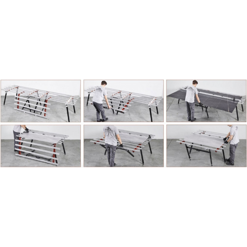 • Extrem de ușor de instalat/demontat fie pe o singura masa de lucru, fie pe mai multe mese de lucru conectate împreună