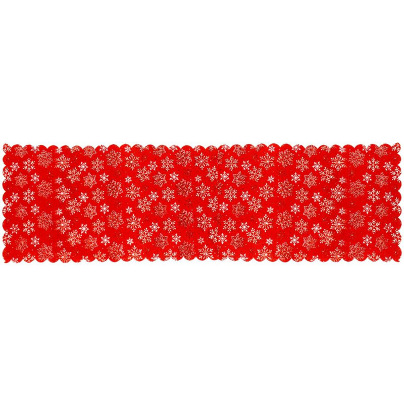 Plus: design frumos Ruloul de masa este ideea perfecta pentru a va decora masa de Craciun. Acesta va evidentia momentele speciale in confortul casei tale alaturi de cei dragi, accentuand aceasta perioada speciala de iarna cu o masa frumos decorata. Fata de masa masoara 187x34 cm si a fost decorata cu fulgi de zapada albi si rosii, pudrati cu sclipici frumos stralucitor. Decoratiunile rosii stralucesc frumos datorita particulelor mici de sclipici folosite. Intregul aspect este atat elegant, cat si festiv.