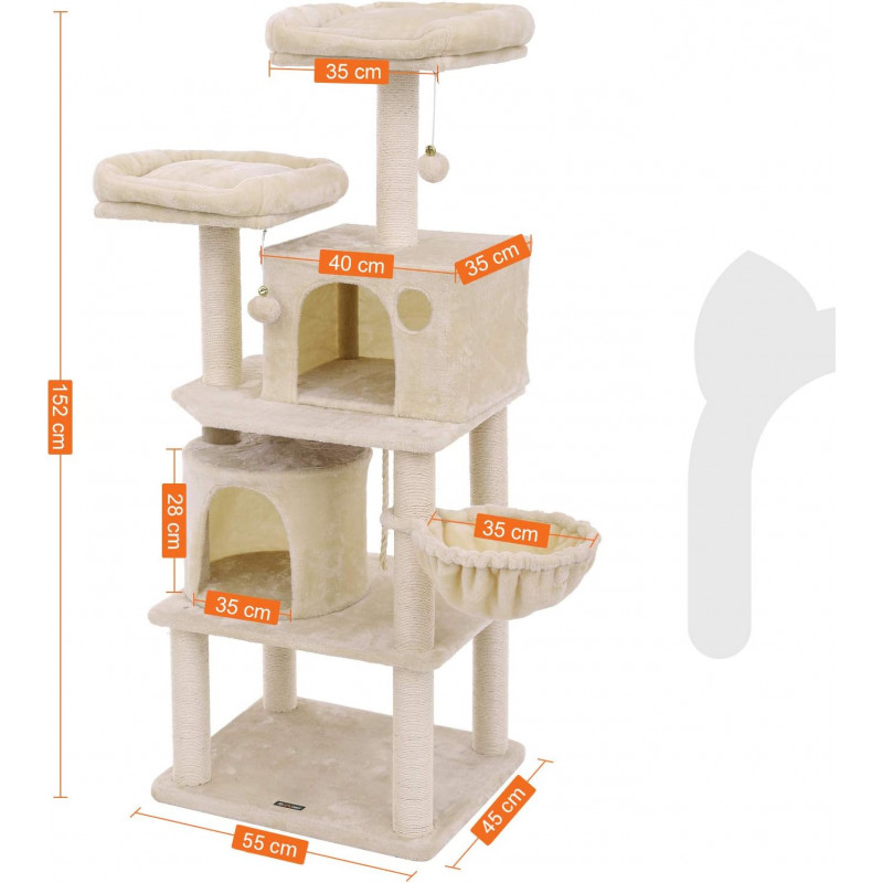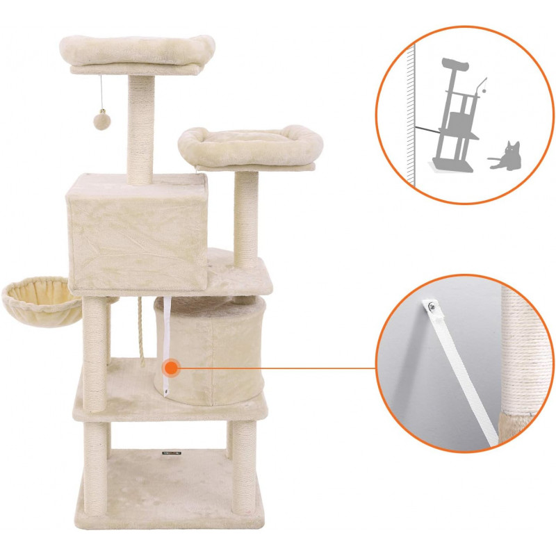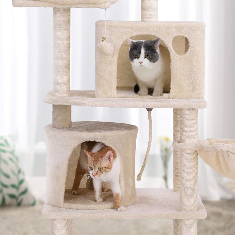 Scurta descriere Ansamblu de joaca pentru pisici cu design robust, ideal pentru catarat, joaca si odihna. Include casute spatioase, platforme, cos confortabil si stalpi de zgariat acoperiti cu sisal. Asigura stabilitate si siguranta datorita constructiei ranforsate si protectiei impotriva inclinarii.