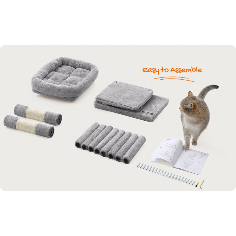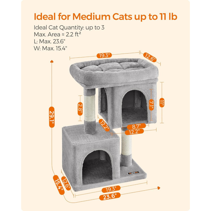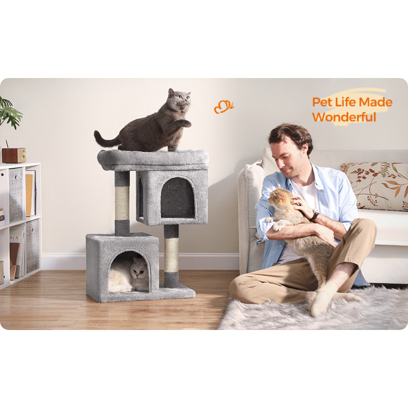 Scurta descriere: Ofera pisicii tale un spatiu complet pentru joaca si relaxare. Cu platforma superioara, doua casute confortabile si stalpi pentru zgariat, acest ansamblu este ideal pentru activitate zilnica si odihna.