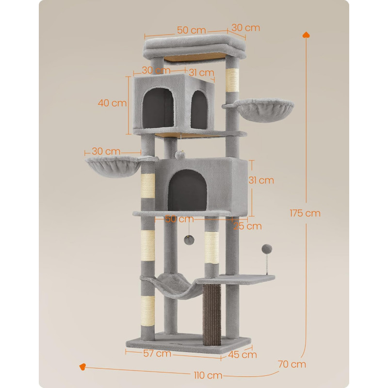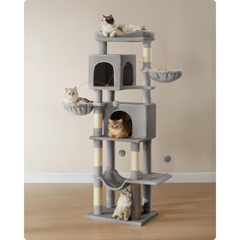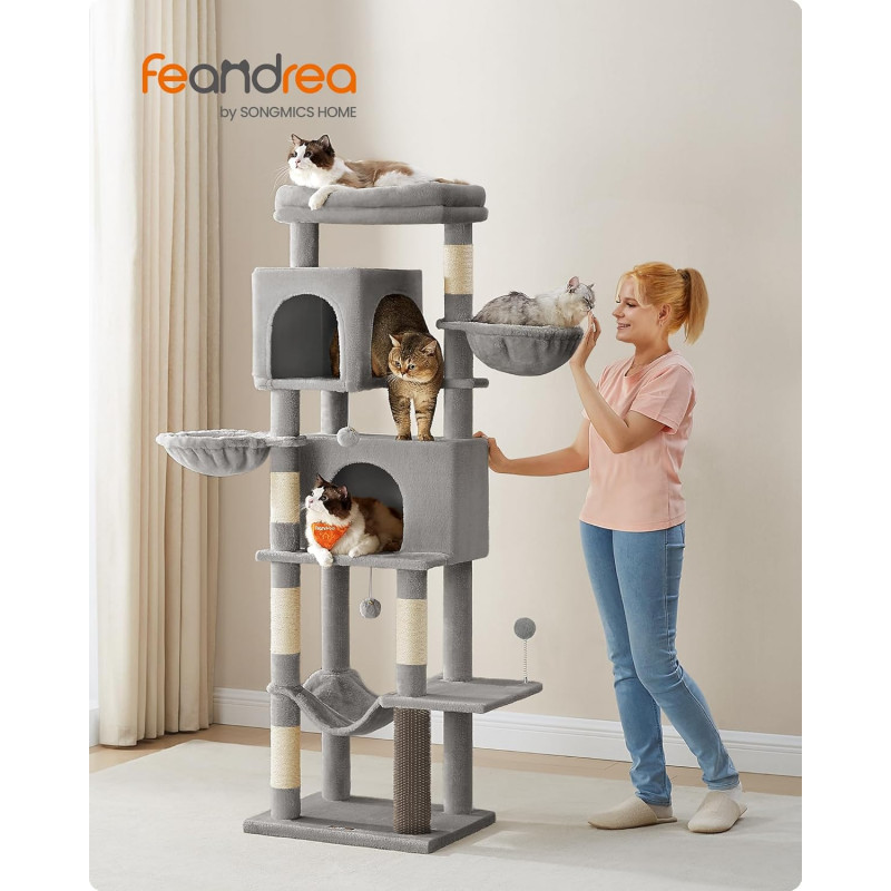 Scurta descriere Ansamblul pentru pisici FEANDREA de 175 cm ofera un spatiu generos pentru joaca si relaxare. Cu mai multe niveluri, pesteri confortabile si zone de observatie, este ideal pentru gospodarii cu mai multe pisici. Structura stabila si materialele rezistente asigura siguranta si durabilitate in utilizare zilnica.