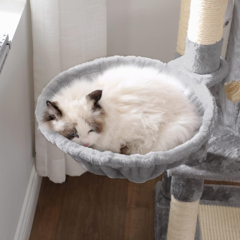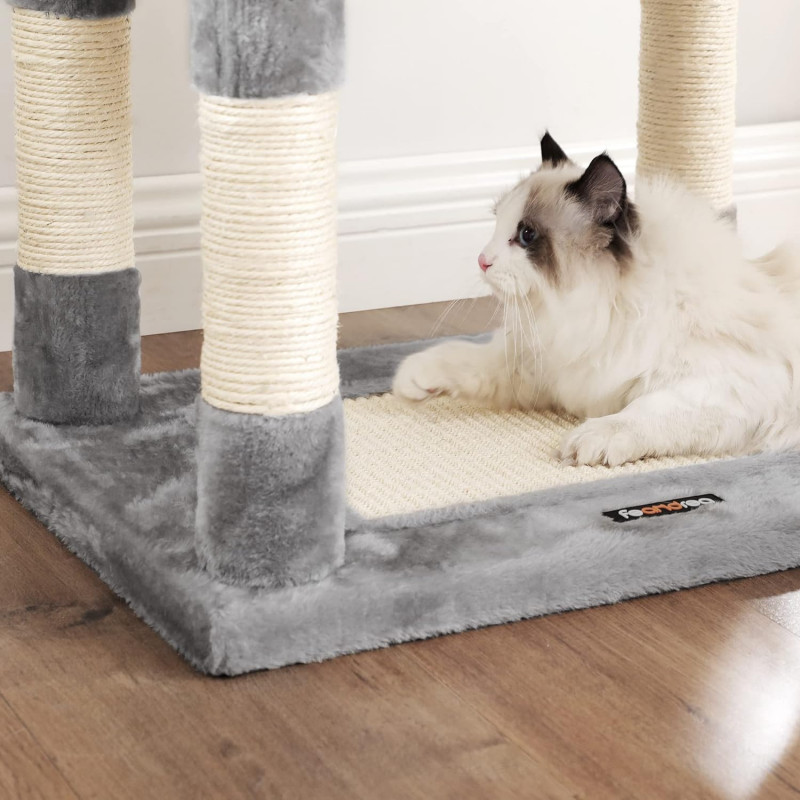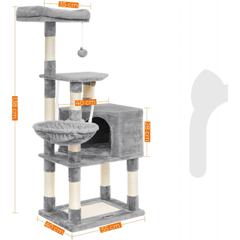 Instructiuni Despre acest articol Arborele de pisici are toate calitatile de care aveti nevoie pentru a va incanta pisica.Materiale de calitate, bucurie durabila: Fabricat cu placi aglomerate de calitate, asigurat de un kit anti-rasturnare, acoperit cu plus durabil si prevazut cu sisal rezistent la uzura, acest arbore pentru pisici va va aduce cu siguranta bucurie de durata.Pestera confortabila a pisicilor: Datorita spatiului inchis si plusului pufos, aceasta pestera pentru pisici ofera un loc linistit si confortabil pentru pisica ta.Acest ansamblu pentru pisici este proiectat pe mai multe niveluri, asemanator unei scari, astfel incat chiar si pisoii tineri si pisicile in varsta pot urca cu usurinta.