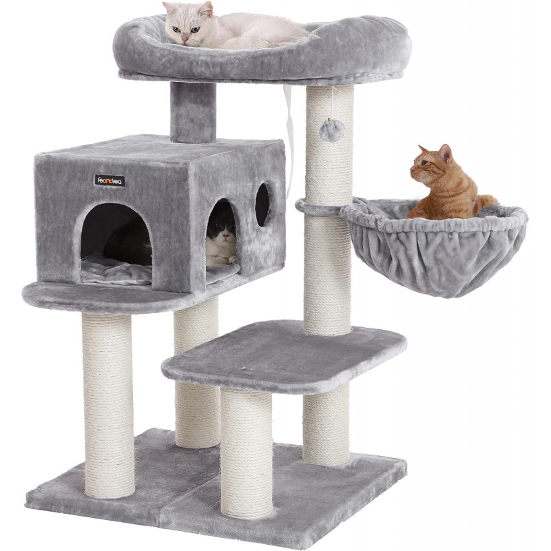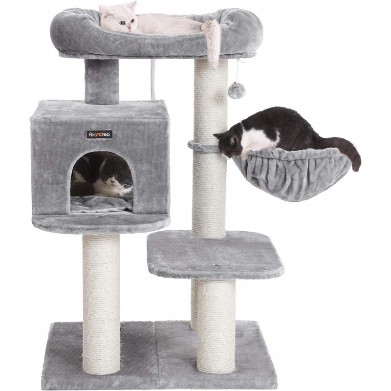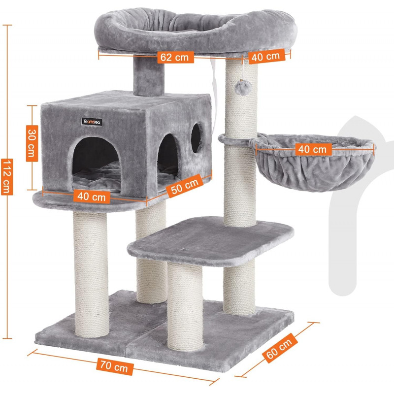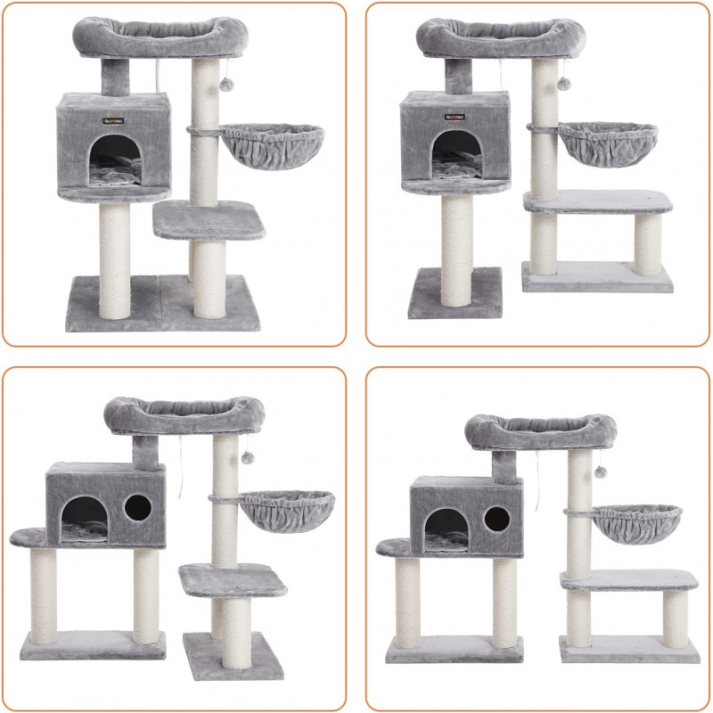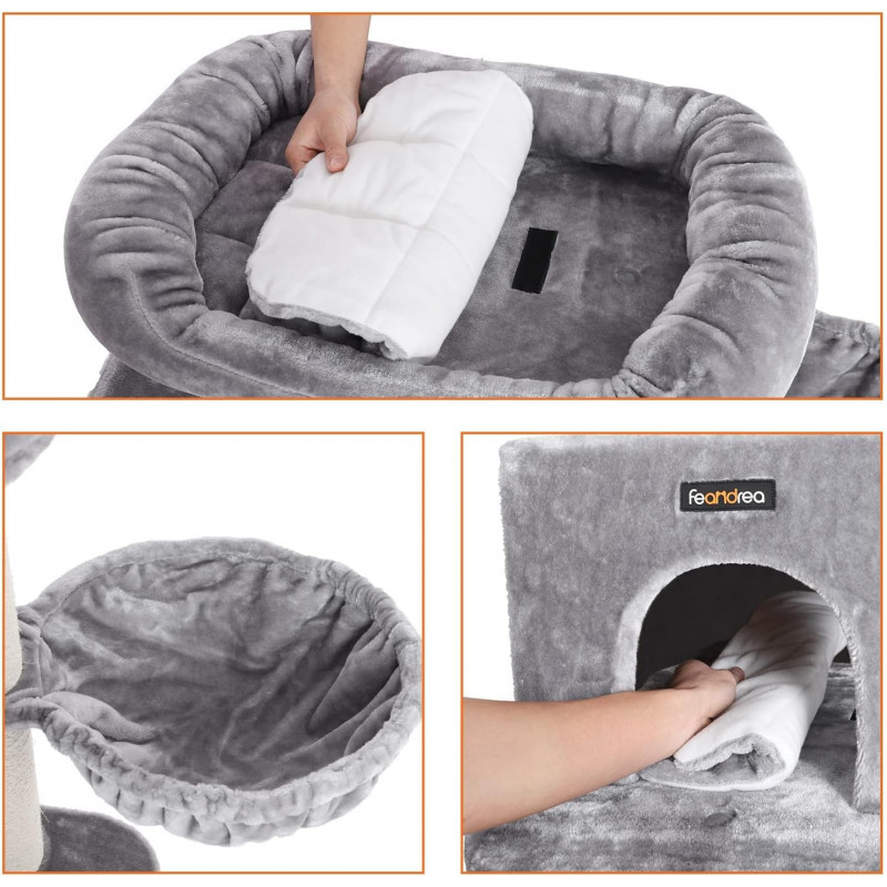 Culoare: gri Ansamblul pentru pisici de la Feandrea are elemente flexibile, care pot fi ajustate in diferite directii. Aceasta jucarie pentru pisici care economiseste spatiu se adapteaza perfect la conditiile din casa dvs. In plus, este echipata cu o platforma superioara foarte mare , o pestera spatioasa si un cuib adanc . Un loc de joaca perfect pentru toate pisicile de interior.