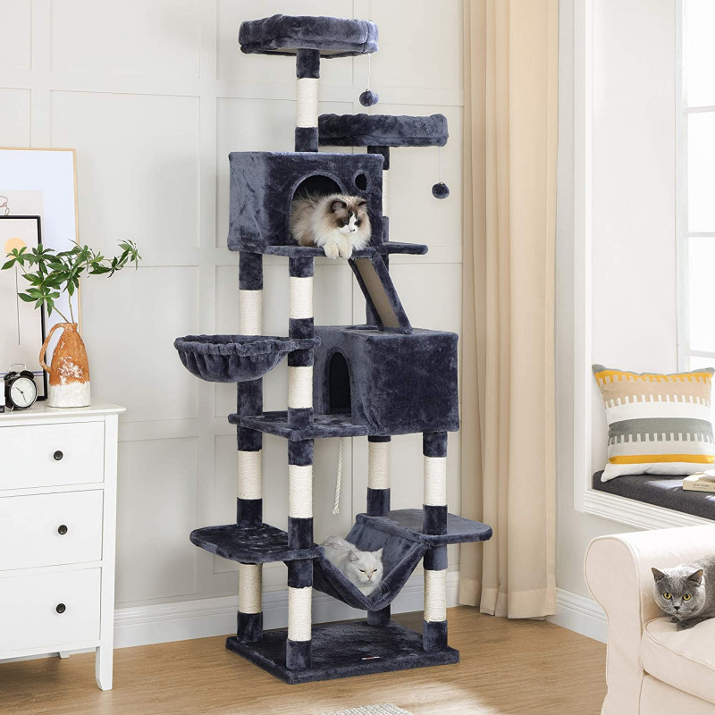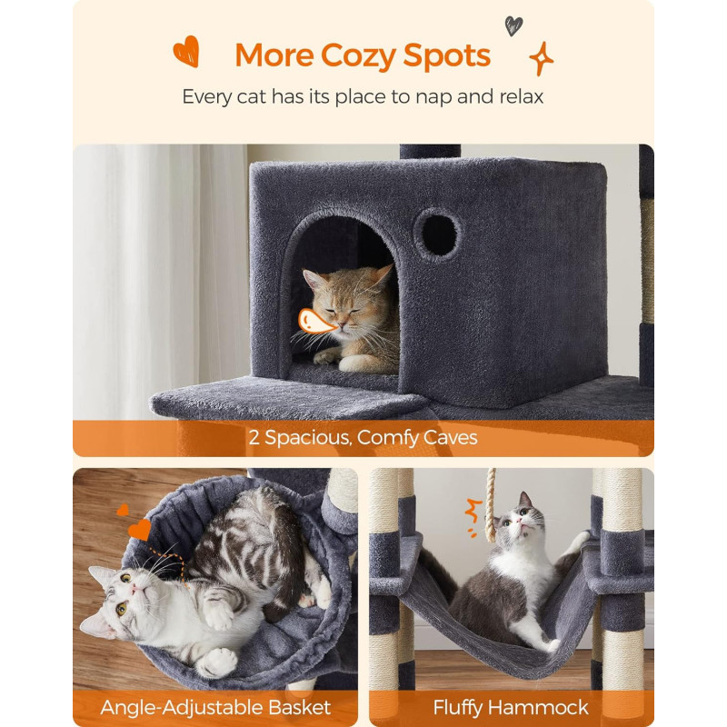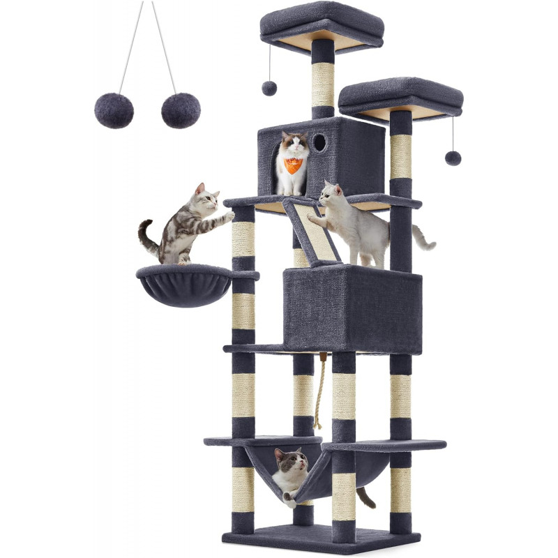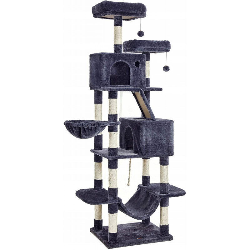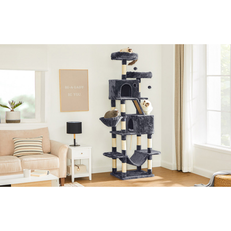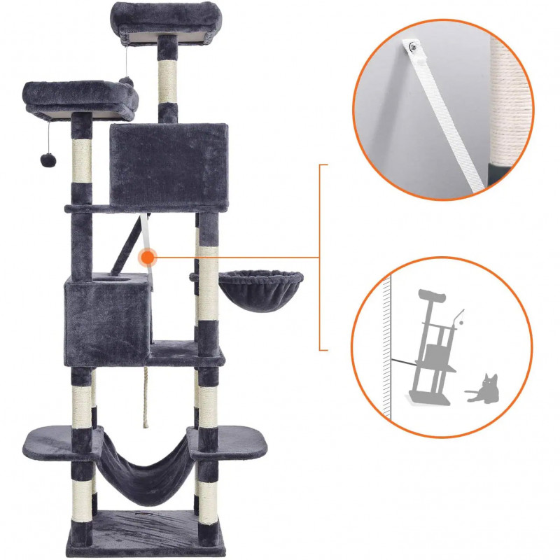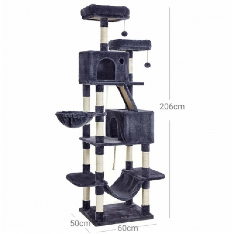 Dimensiune: 60 x 50 x 206 cm (L x L x I) Despre acest articol Acest ansamblu de joaca este ideal atat pentru pisicile active, cat si pentru pisicutele atrase de locuri inalte, pesteri intunecate sau de bilute de blana. Ansamblu de joaca ofera pisicilor crescute in casa o suprafata excelenta pentru a manifesta nevoia naturala de a-si ascuti ghearele, astfel incat pisica sa nu strice canapeaua sau alte obiecte din casa.
