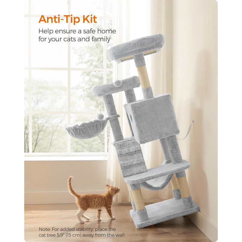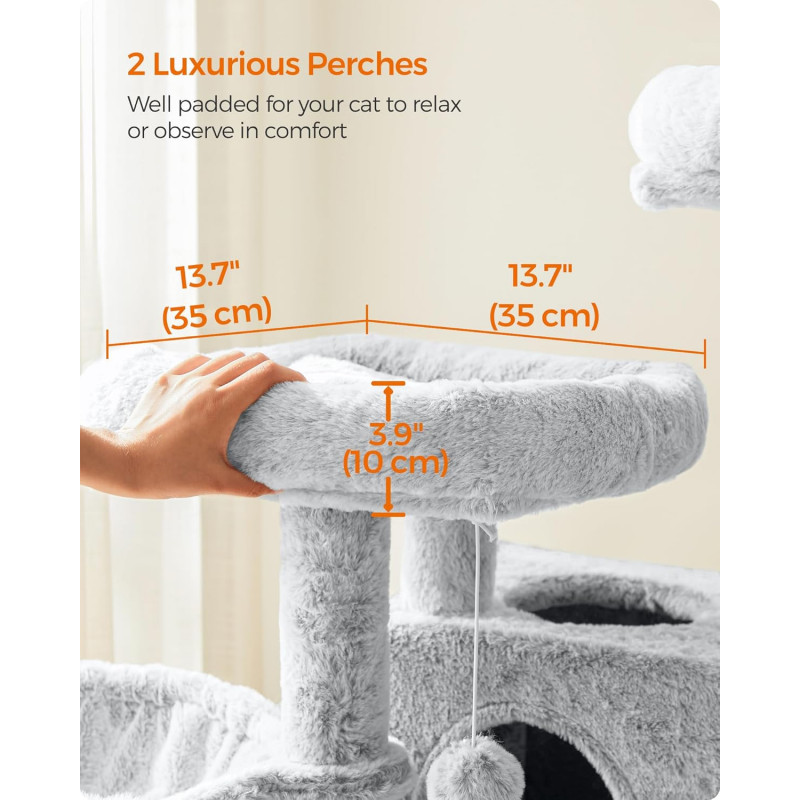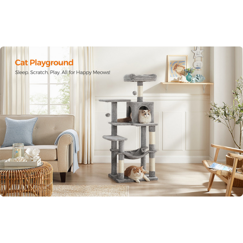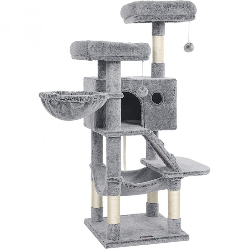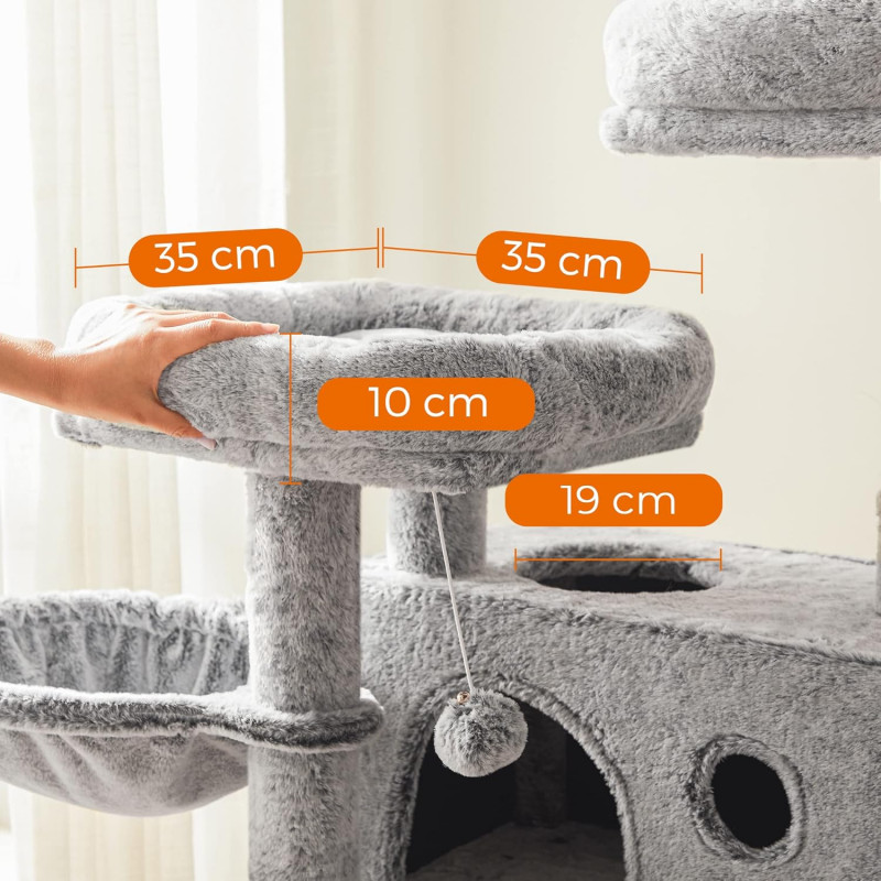 Scurta descriere: Ansamblul pentru pisici ofera un spatiu complet pentru joaca si relaxare. Acoperit integral cu plus moale si dens, acesta asigura confort la fiecare nivel. Include multiple zone de odihna si activitate, fiind ideal chiar si pentru pisici de talie mare.