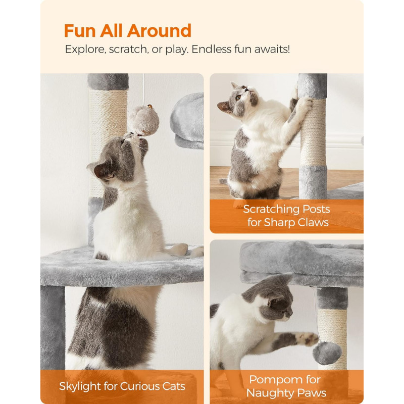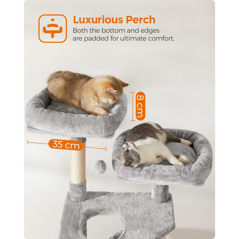 1x pompon pentru mai multa distractie. Daca trebuie sa inlocuiti un pompon sau nu sunteti un fan al zgomotelor de clopotei, acest ansamblu vine cu un pompon de rezerva fara clopotel. Acesta este cu siguranta momentul potrivit pentru a oferi pisicii tale iubite un loc ideal de dezvoltare, joaca si odihna. Locul nostru de joaca nu este doar o piesa de mobilier, este o oaza de placere pentru animalul tau de companie.