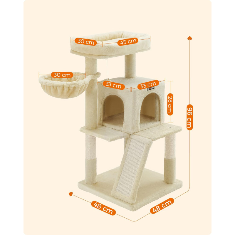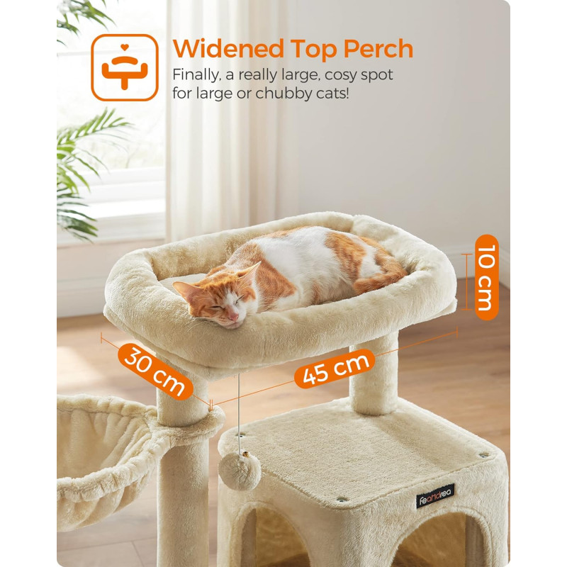 Culoare: bej Dimensiuni ambalaj 96x48x48 cm Perfect pentru pisici mari sau dolofane : Cu o platforma larga (45 x 30 cm), pisicile mari sau dolofane se pot intinde si relaxa confortabil.