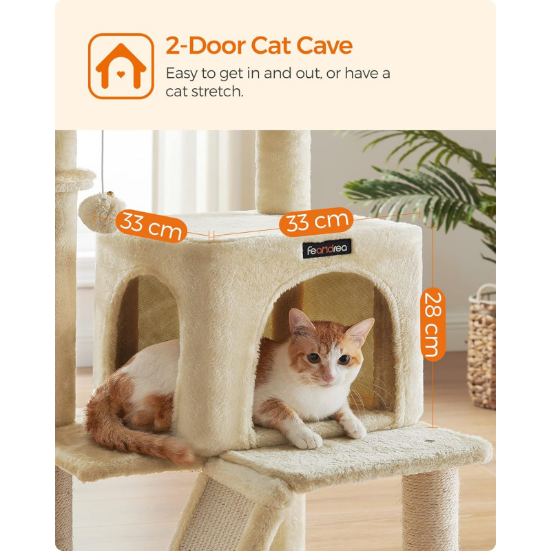 Loc de joaca sigur: Placa PAL robusta pentru durabilitate, placa de baza ranforsata pentru stabilitate suplimentara si protectie la inclinare pentru siguranta - Acest copac pentru pisici cu stalpi din sisal ofera un loc de joaca sigur pentru pana la 3 pisici (maximum 7 kg fiecare).