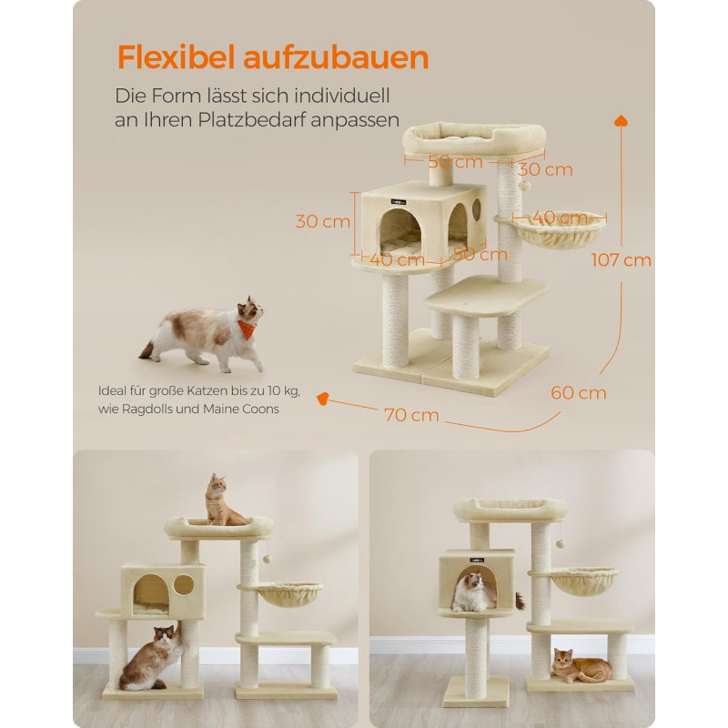 Se adapteaza spatiului dvs: Datorita formei reglabile, puteti aranja turnul de catarat pentru pisici in diferite moduri pentru a se potrivi diferitelor camere
