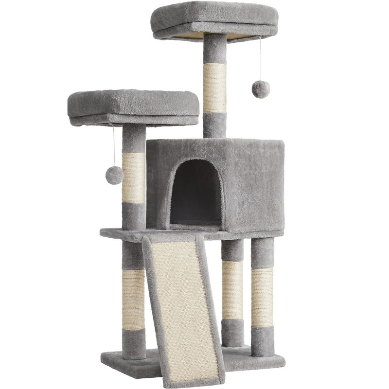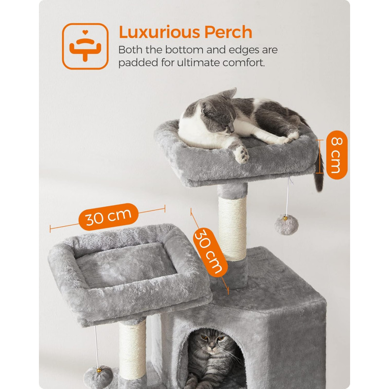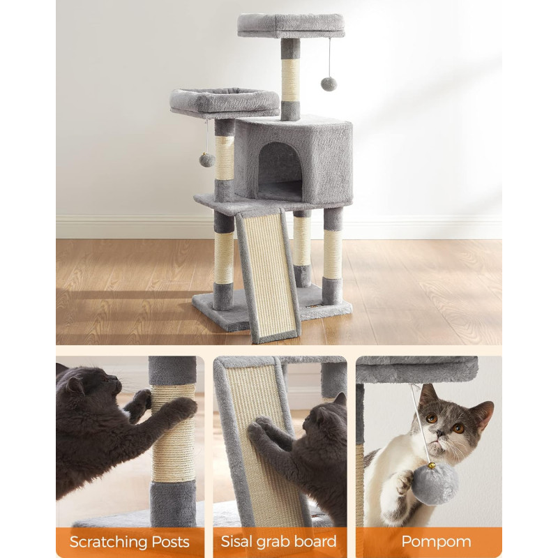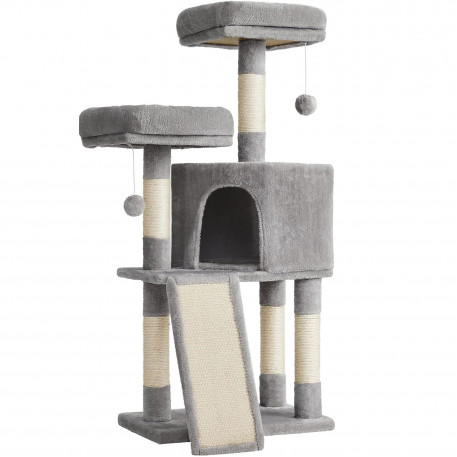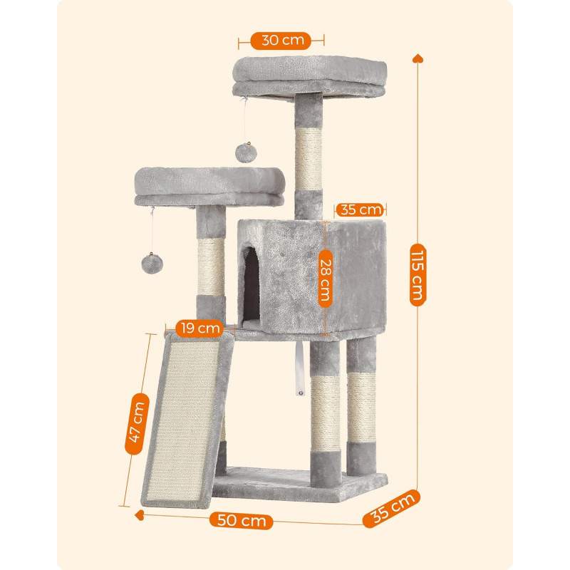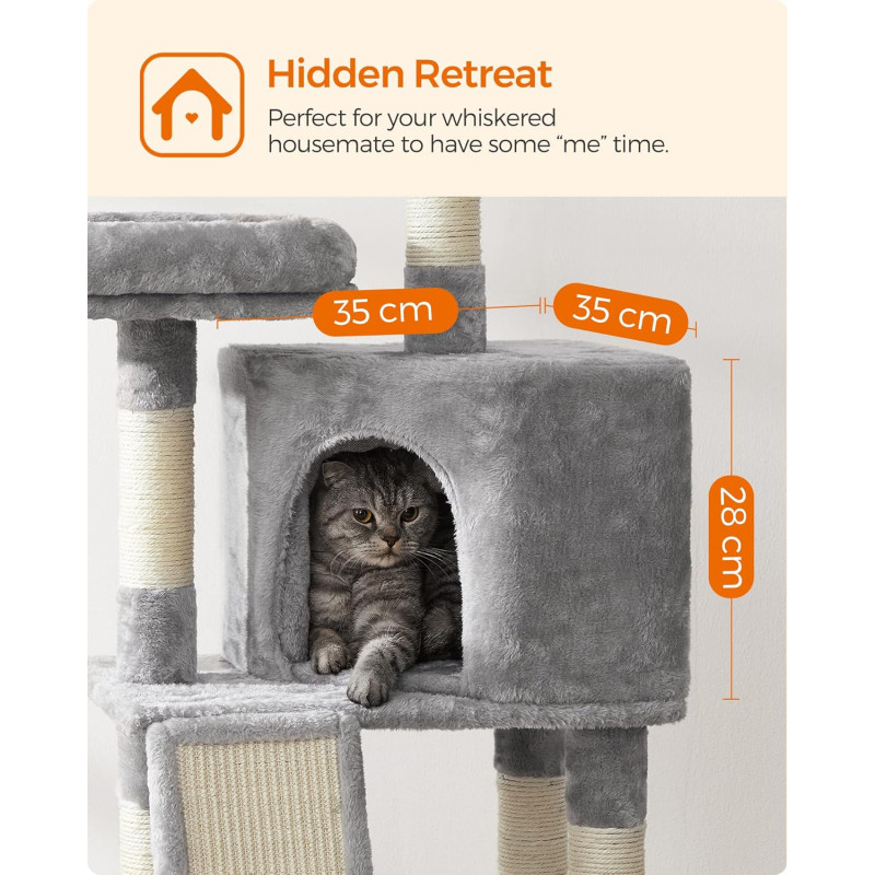 Lasa scarpinatul sa fie distractiv: Cu o rampa mare de zgariat si 5 posturi de zgariat, pisica dvs. isi poate ascuti ghearele pe acest turn pentru pisici dupa bunul plac, iar mobila dvs. se va bucura si ea sa auda asta Aveti o pisica energica? Nu va faceti griji. Cu o baza ranforsata pentru stabilitate suplimentara si un kit anti-inclinare pentru siguranta sporita, acest condo pentru pisici este puternic si stabil pentru ca dulcele tau pachet de energie sa sara in sus si in jos Fa-ti pisica fericita: Rasfatati-va pisica cu acest copac de zgariat, astfel incat sa nu se simta singura cand sunteti plecat, si lasati-o sa se joace si sa se relaxeze in confort