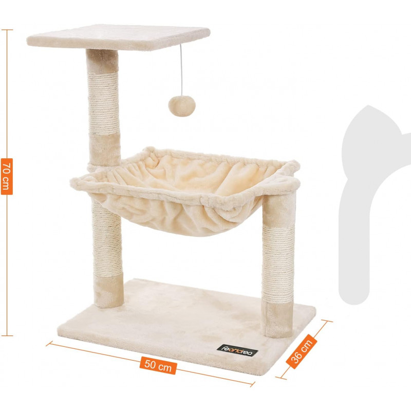 Dimensiunea placii de baza: aproximativ 50 x 36 cm (L x P); dimensiunea casei patrate pentru pisici: aproximativ 40 x 36 x 12 cm (L x P x H), diametrul coloanei: 7,1 cm