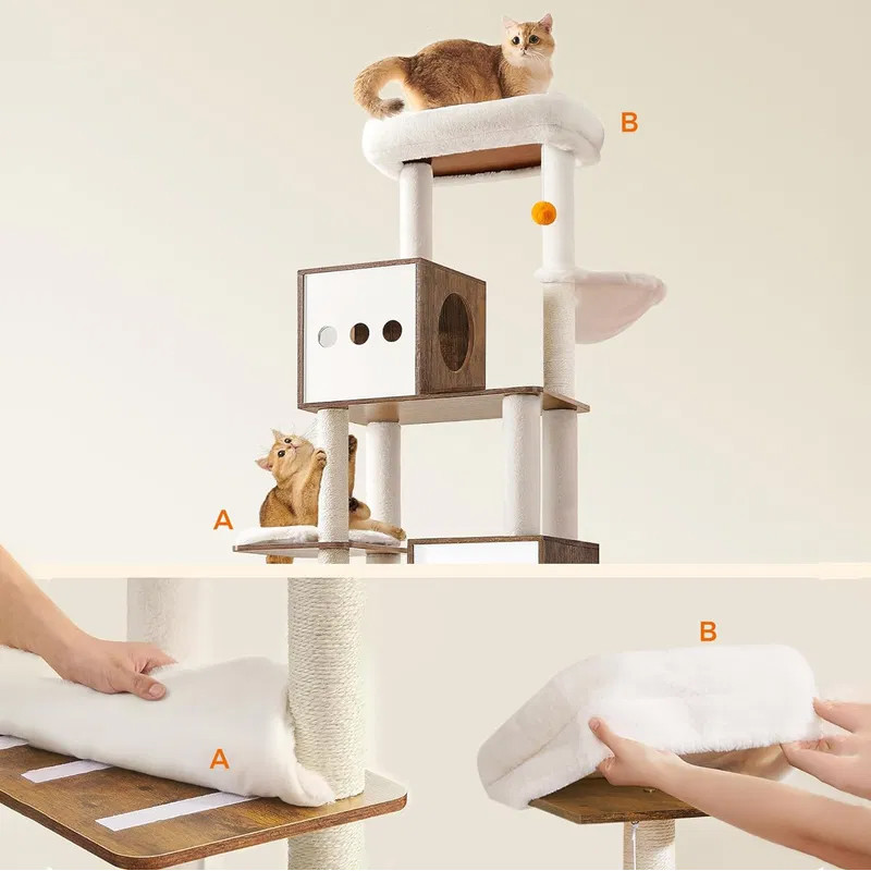 Functii: ansamblu de joaca, stalpi de zgariat, dulap pentru litiera, platforme, perne lavabile