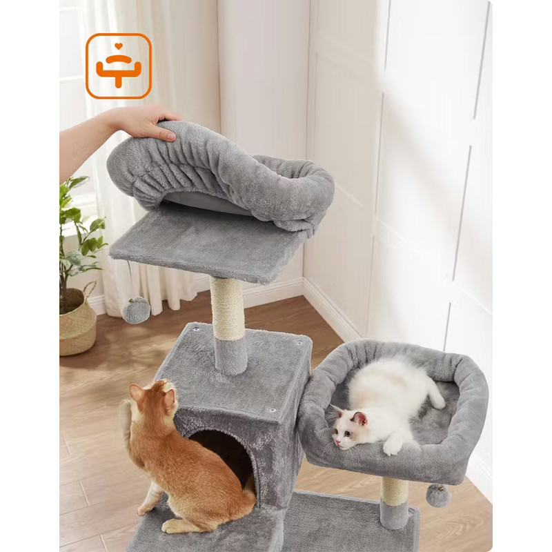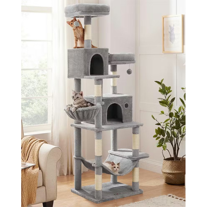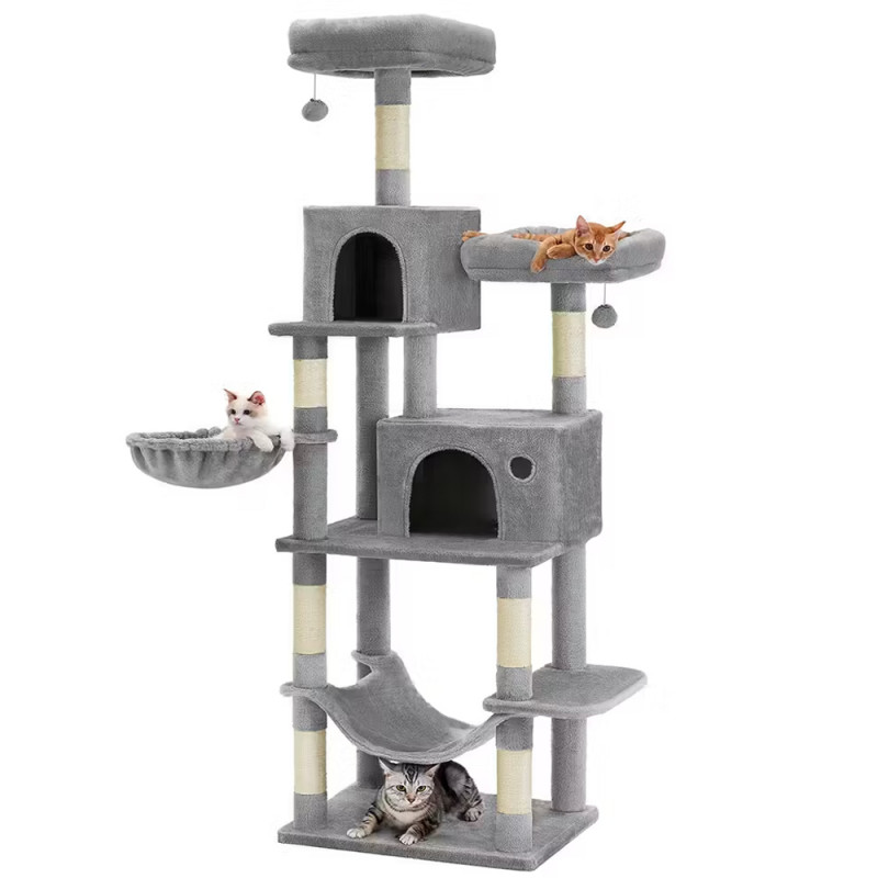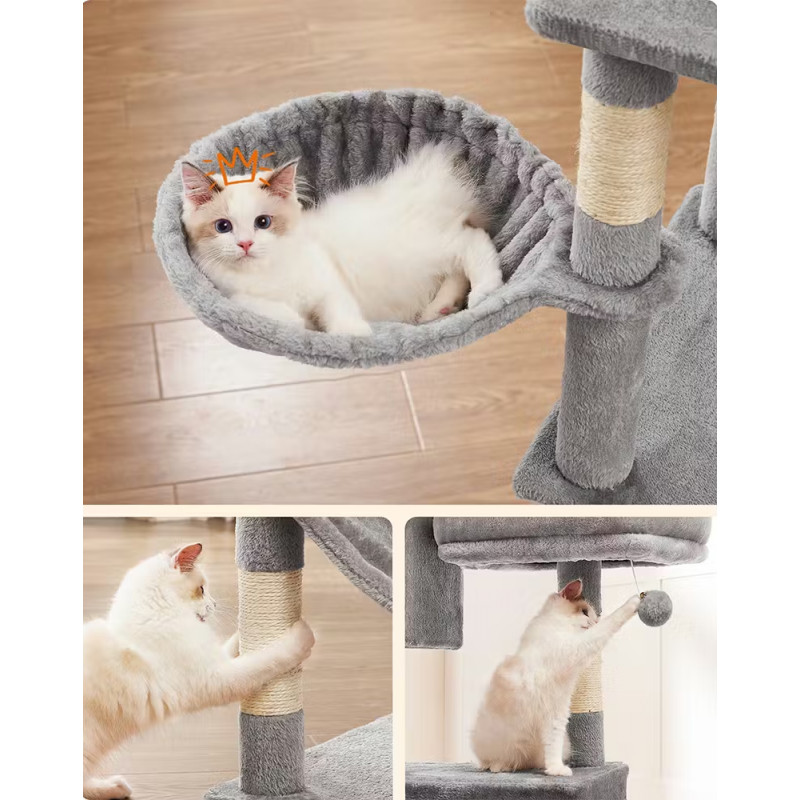 Functii: platforme, cusca, hamac, cos, stalpi de zgariat, mingi suspendate