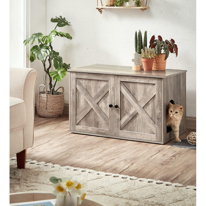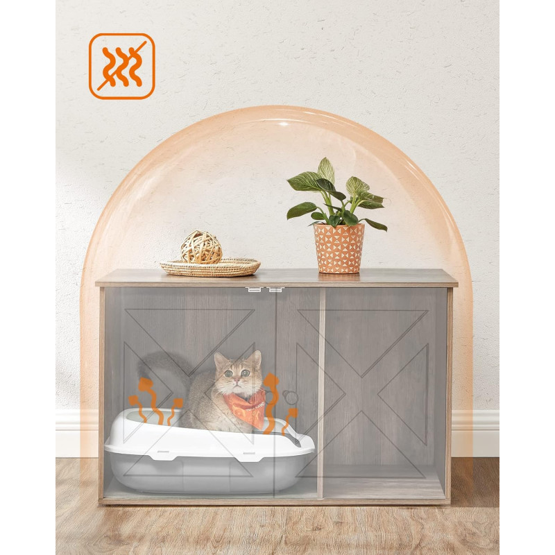 Spatiu mare: Spatiul sau interior este de 50,3 x 50,3 x 46,5 cm, potrivit pentru majoritatea tavitelor de nisip. Puteti scoate separatorul pentru a mari spatiul la 75,5 x 50,3 x 46,5 cm (nota: fara separator, sarcina maxima creste de la 60 kg la 10 kg) Pentru pisici, dar si pentru dvs.: Transformati-o intr-o litiera pentru a ascunde mizeria sau adaugati un pat pentru pisici in interior pentru a o transforma intr-un culcus confortabil. Asezati cateva plante deasupra pentru a va inveseli casa - il puteti utiliza in mai multe moduri.