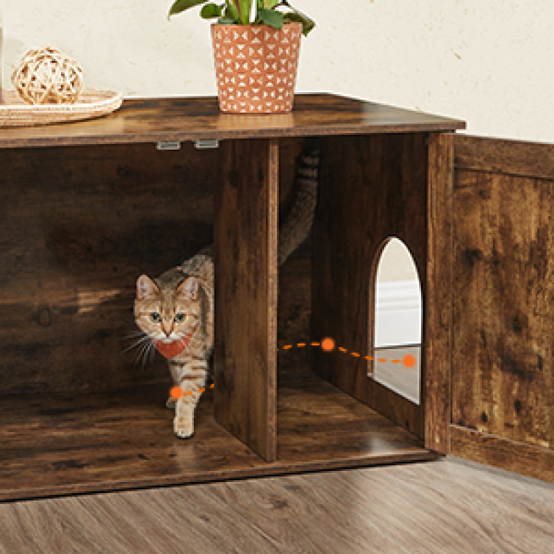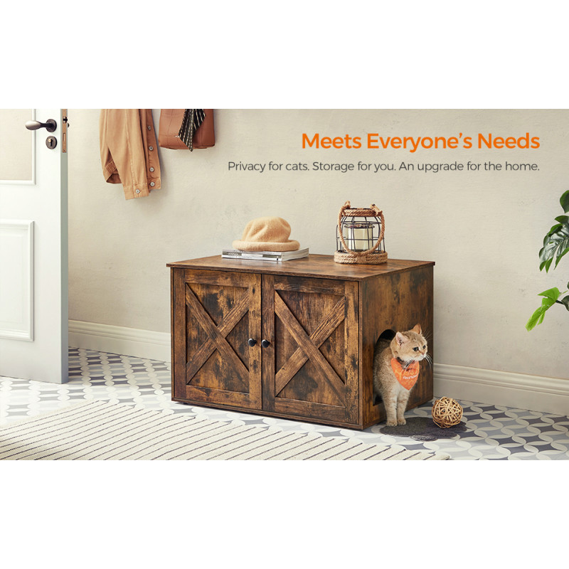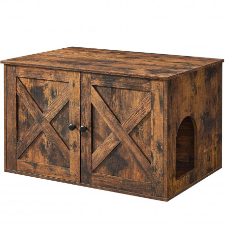 Capacitate de incarcare statica a placii de baza: 30 kg Despre acest articol Cu stilul sau rustic si usile elegante de hambar, aceasta litiera se integreaza cu usurinta in locuinta dumneavoastra.Datorita constructiei inchise, aceasta litiera pentru pisici ofera un loc privat unde pisica dvs. se simte in siguranta pentru a-si face urgentele si mai putina mizerie - o solutie avantajoasa pentru ambele parti!Cu o dimensiune de 50 x 50 x 46 cm, compartimentul principal al acestui dulap pentru pisici ofera suficient spatiu pentru pisici. De asemenea, puteti indeparta separatorul pentru a mari suprafata la 74,9 x 50 x 46 cm.Un singur produs, mai multe utilizari: Plasati inauntru o litiera pentru pisici, folositi-o ca masa laterala sau plasati un pat pentru pisici inauntru pentru a crea un adapost confortabil.Cu
