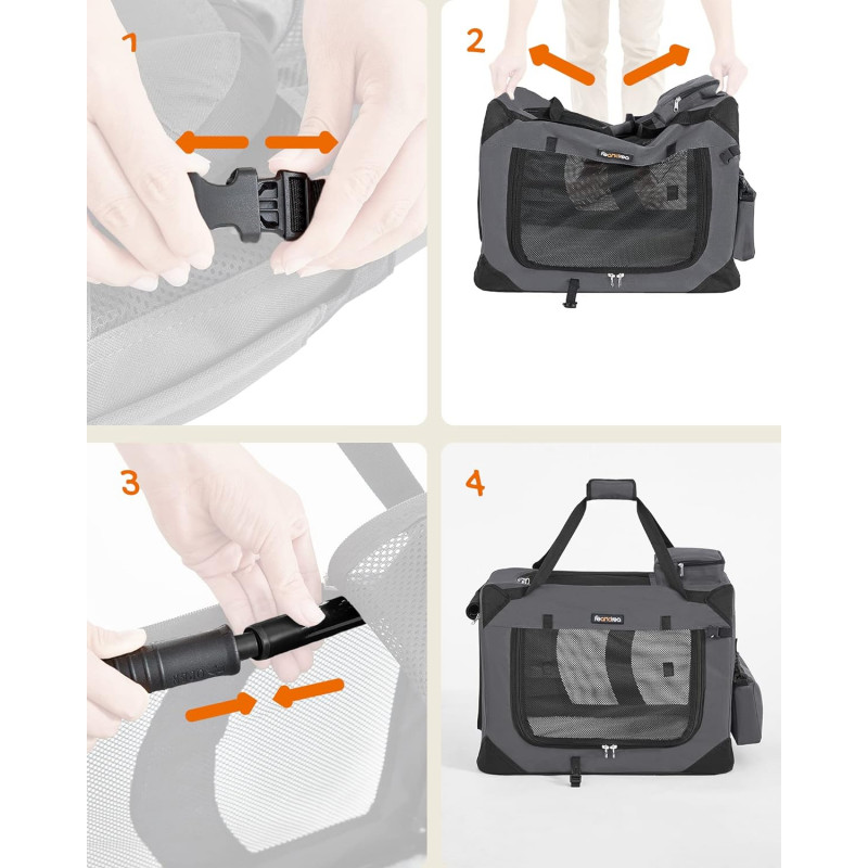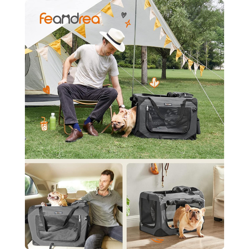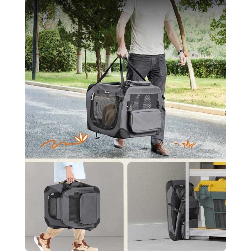 Portabila si pliabila: cutia de transport pentru pisici este usor de transportat datorita manerelor practice. Se pliaza atunci cand nu este folosit (dimensiune pliata: 60 x 42 x 8 cm) si se depoziteaza in portbagaj sau colt.