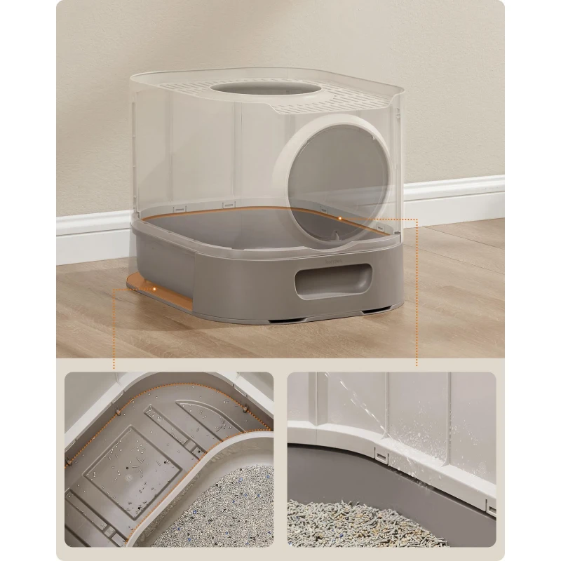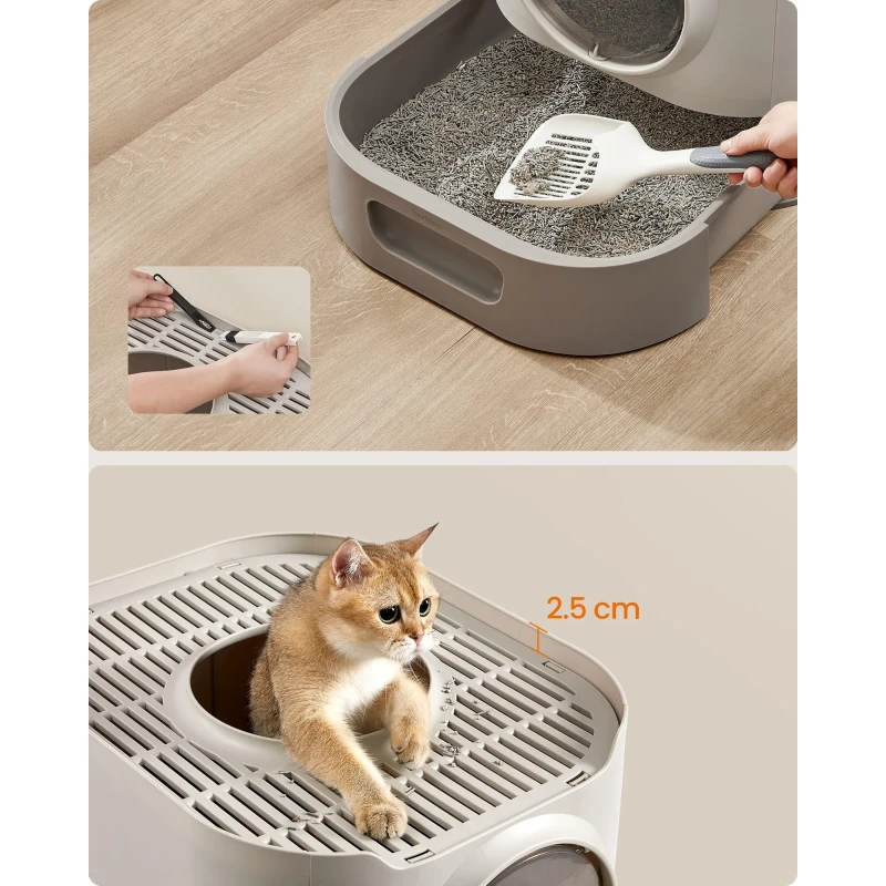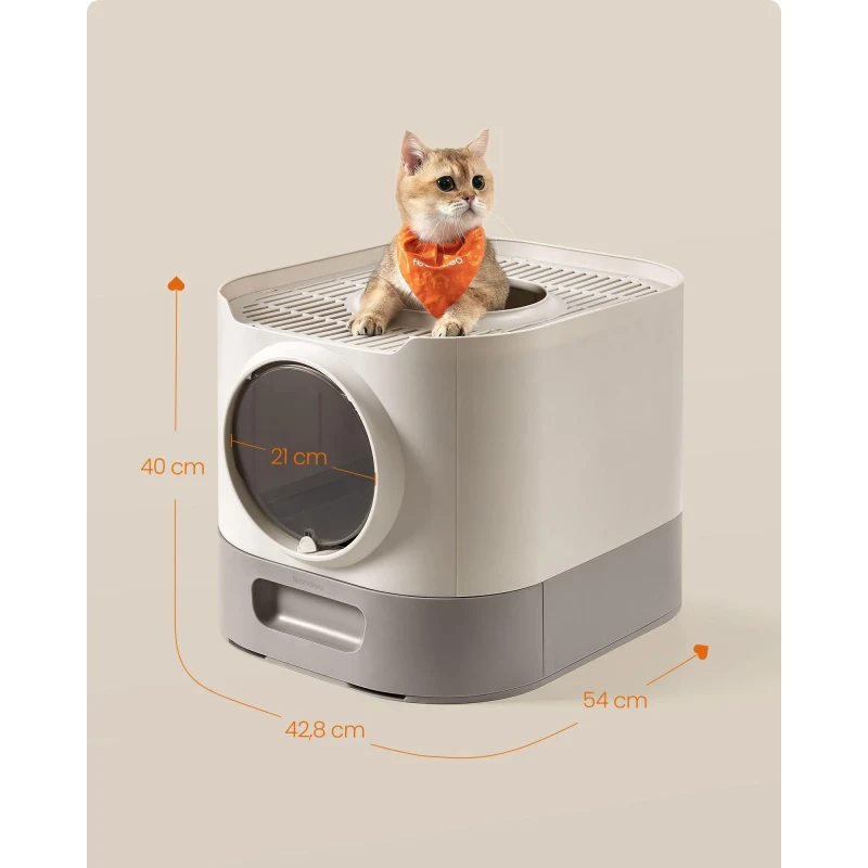 Scurta descriere Litiera FEANDREA XXL cu capac ofera un spatiu generos si igienic pentru pisici de diferite dimensiuni. Designul inchis reduce mirosurile si asigura intimitate, iar tava extensibila permite golirea si curatarea usoara. Grilajul superior si constructia dubla laterala ajuta la mentinerea curateniei in jurul litierei.