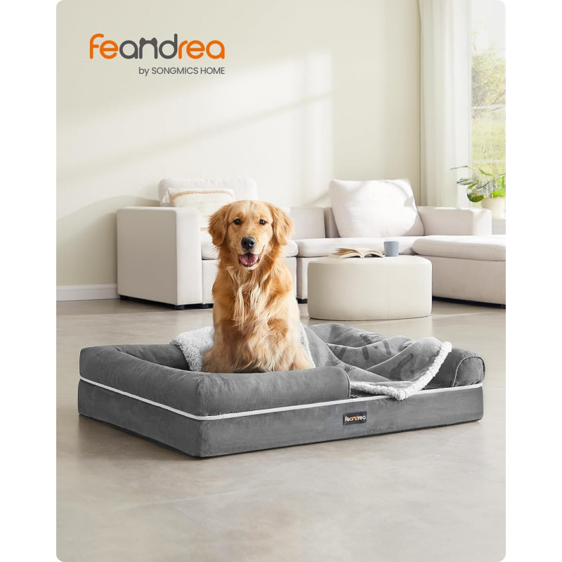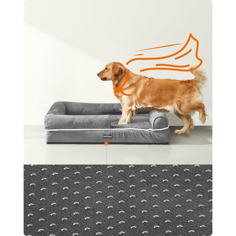 Scurta descriere: Pat ortopedic pentru caini, conceput pentru confort sporit si sustinere optima in timpul odihnei. Suprafata moale si marginile inaltate creeaza un spatiu sigur si relaxant, potrivit in special pentru caini mai in varsta sau cu nevoi speciale.