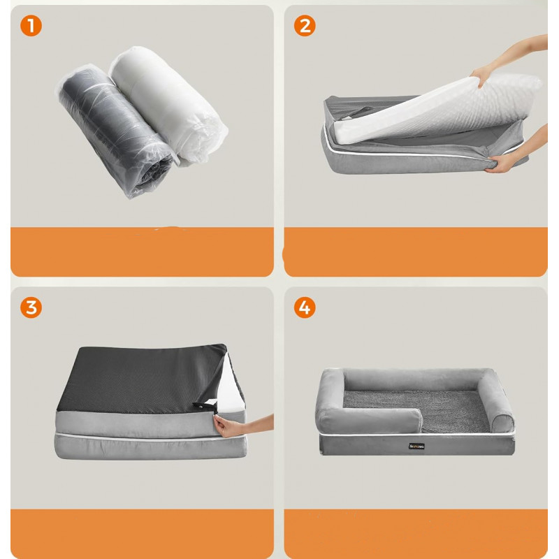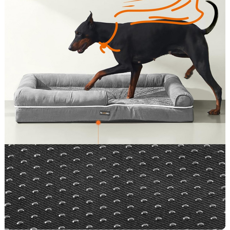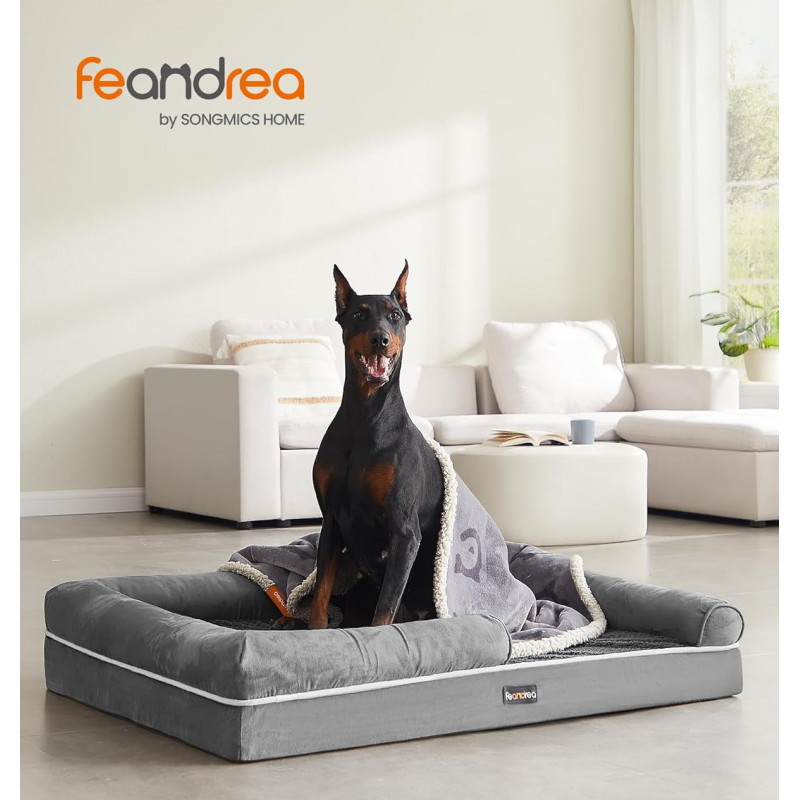 Scurta descriere: Patul ortopedic pentru caini Feandrea ofera un somn linistit si suport ergonomic pentru caini de talie medie. Prevazut cu margini inaltate si captuseala moale, ofera confort si siguranta. Husa impermeabila si detasabila asigura igiena usoara, iar baza antialunecare previne alunecarile accidentale.