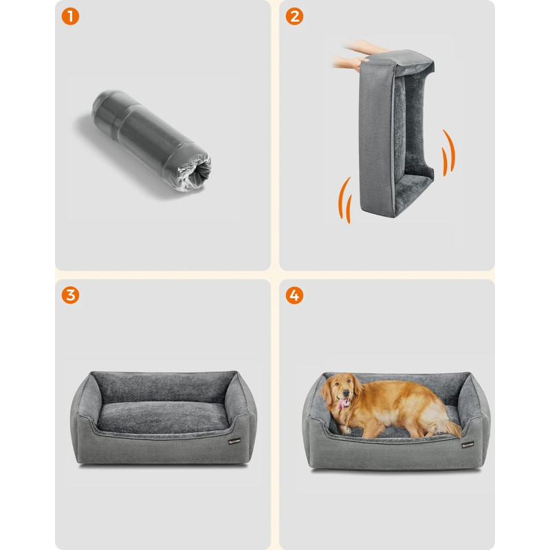 Partea inferioara antiderapanta: Pentru a va asigura ca prietenul dvs. blanos nu aluneca involuntar prin sufragerie, acest pat pentru caini este prevazuta cu o parte inferioara antiderapanta, astfel incat sa se simta in siguranta atunci cand se urca si coboara.