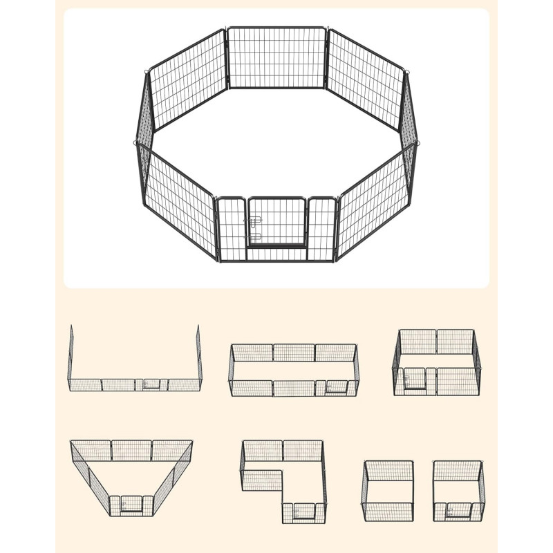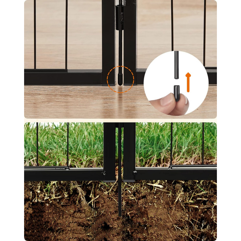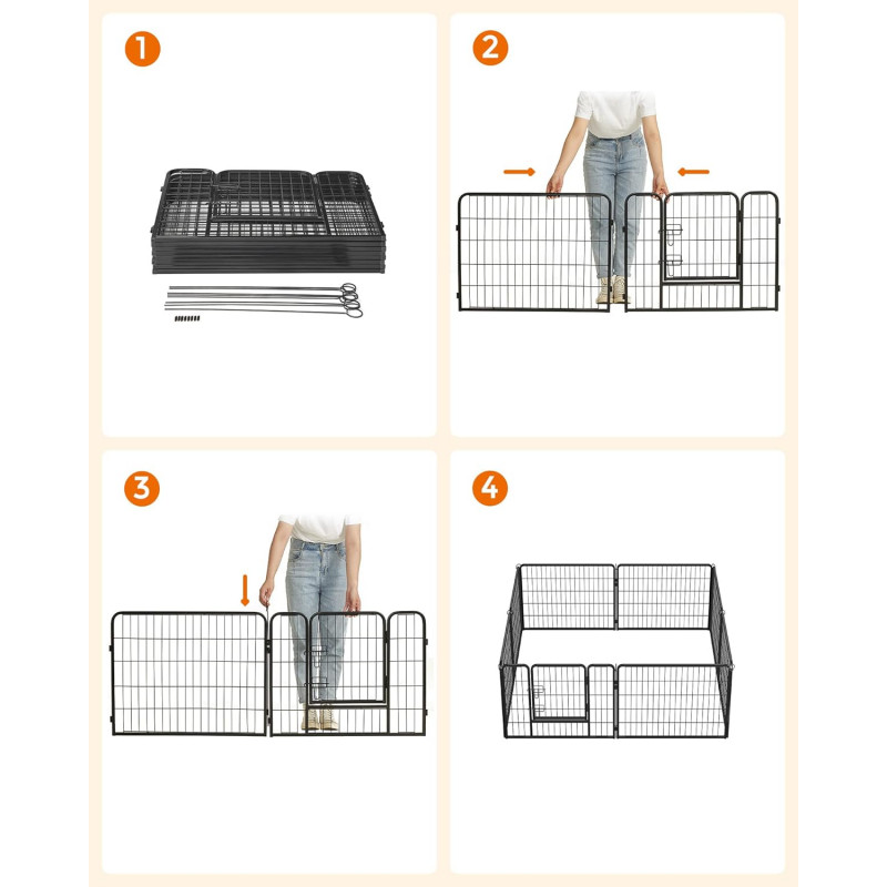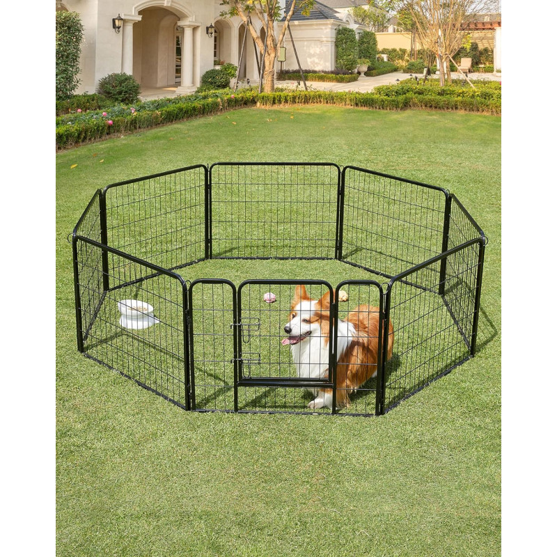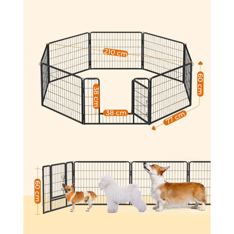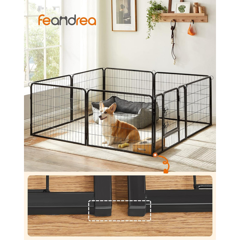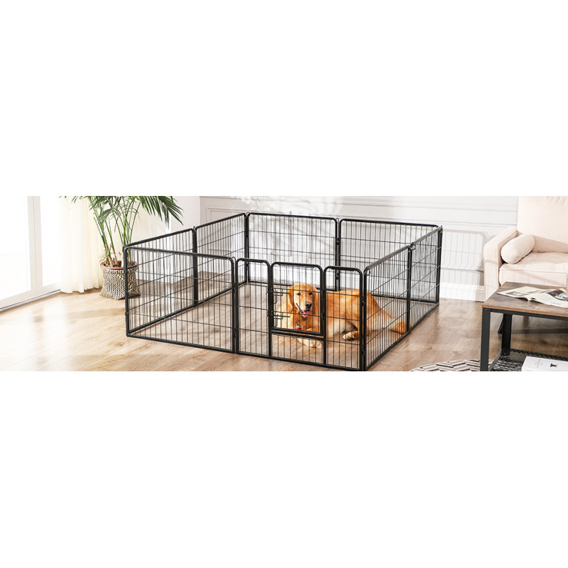 Ajuta la rezolvarea problemelor de comportament ale cainilor Fabricat din tuburi metalice solide si echipat cu glisoare de podea, acest parc de joaca pentru catei impresioneaza prin stabilitatea sa buna. Tijele de legatura sunt folosite si pentru a fixa tarcurile la sol (daca este folosit in gradina),Tot ce trebuie sa faceti este sa conectati elementele tarcului impreuna cu ajutorul tijelor de legatura - poate fi montat in doar cateva minute. Atunci cand nu le folositi, le puteti plia si depozita pentru a economisi spatiu. Colturi si margini rotunjite si o usa de 32 x 45 cm cu 2 zavoare in forma de L - astfel incat cateii dvs. sa nu se raneasca sau sa deschida poarta din greseala.