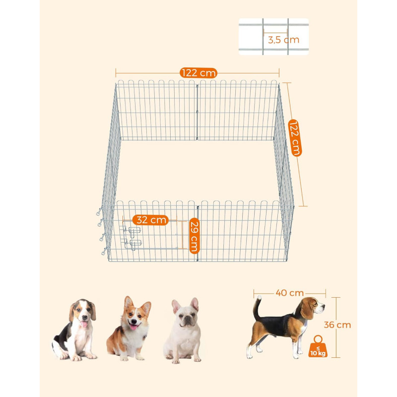 Scurta descriere: Ofera un spatiu sigur si flexibil pentru animale cu acest tarc pliabil din metal. Usor de montat si adaptabil in diferite forme, este ideal pentru utilizare atat in interior, cat si in exterior.
