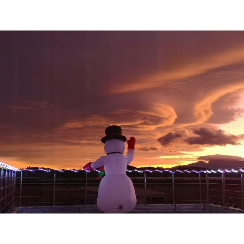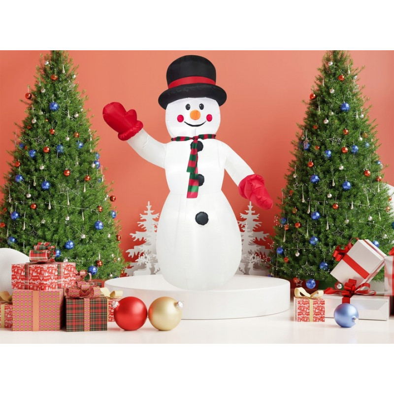 Diametru total: 100 cm Intampina sarbatorile intr-un mod unic cu adorabila noastra decoratie de Craciun - un om de zapada gonflabil cu LED-uri. Conceput cu atentie la detalii, acest fermecator om de zapada din poliester rezistent va evidentia magia Craciunului in casa ta. Sursa de alimentare inclusa este o adevarata bijuterie de functionalitate. Umflarea automata a figurinei este doar o parte din abilitatile sale - aceasta alimenteaza, de asemenea, trei diode LED care dau omului de zapada o stralucire magica. Echipat cu un grad de impermeabilitate IP44, certificare CE si marca GS, aceasta sursa de alimentare nu numai ca ne ofera siguranta, dar indeplineste si cele mai inalte standarde de calitate.