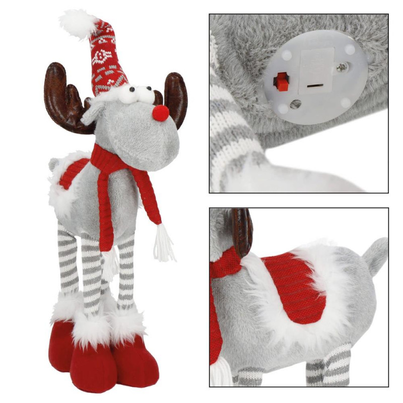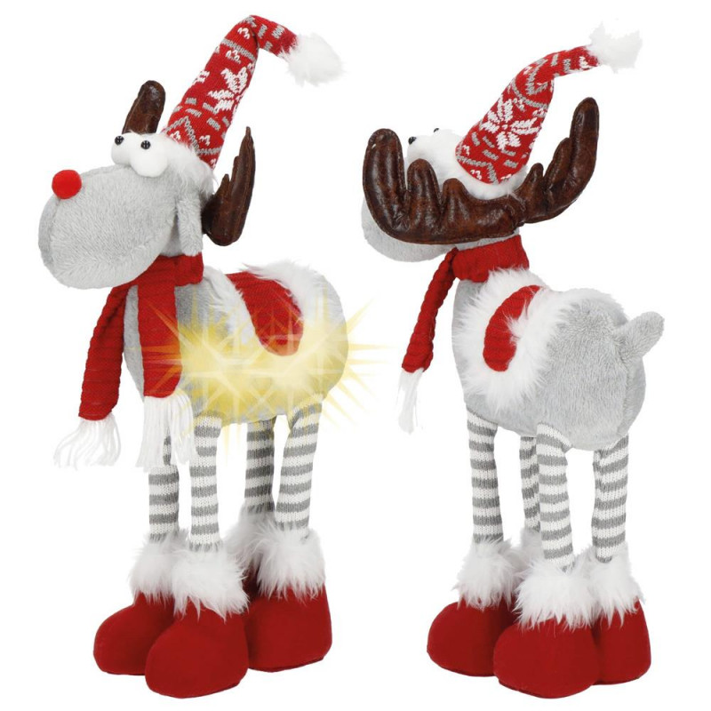 Informatii suplimentare: Palaria poate fi modelata liber datorita sarmei din interiorul ei Renul de Craciun va fi un element perfect de decor care ne va duce intr-o atmosfera magica si festiva. Datorita picioarelor telescopice, silueta poate fi ajustata in inaltime pentru a se potrivi preferintelor individuale.Decorul include o palarie si o esarfa de Craciun. Sarma din interiorul palariei cu pompon ii permite sa fie indoita in directii diferite. Decorul se va potrivi perfect in camera unui copil, dar va fi si o idee grozava pentru un cadou de Craciun.Mascota este realizata dintr-un material moale, placut la atingere.