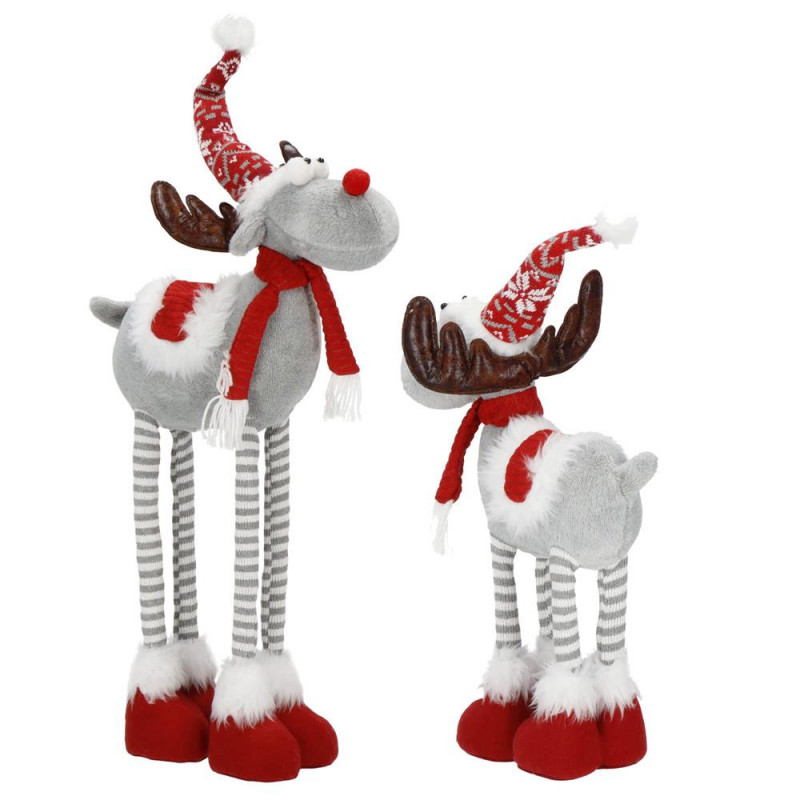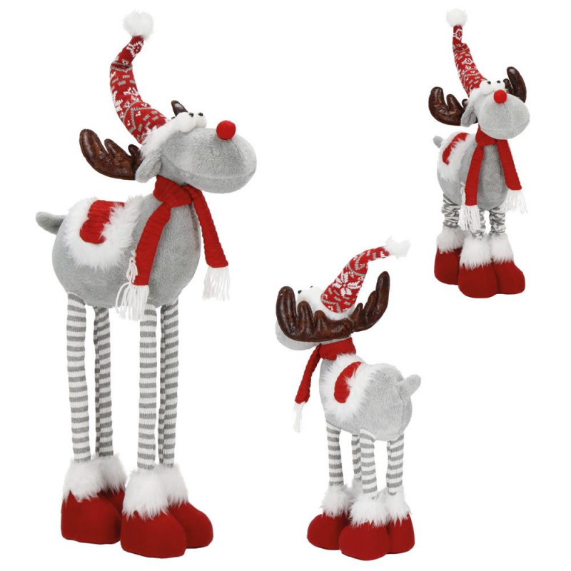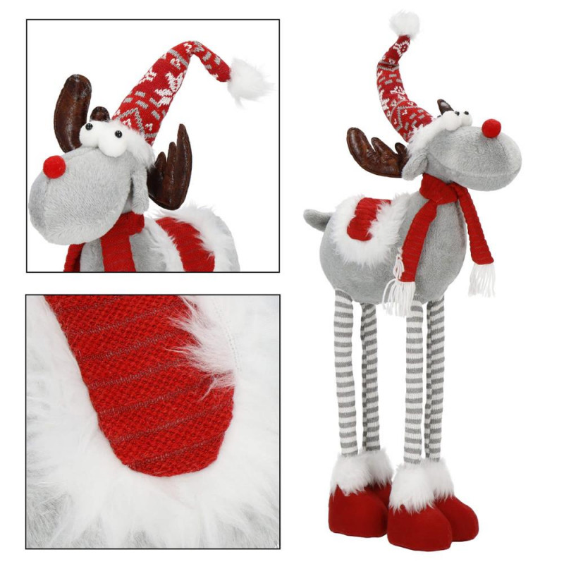 Latimea totala: aprox. 8 cm Renul de Craciun va fi un element perfect de decor care ne va duce intr-o atmosfera magica si festiva. Datorita picioarelor telescopice, silueta poate fi ajustata in inaltime pentru a se potrivi preferintelor individuale.Decorul include o palarie si o esarfa de Craciun. Sarma din interiorul palariei cu pompon ii permite sa fie indoita in directii diferite. Decorul se va potrivi perfect in camera unui copil, dar va fi si o idee grozava pentru un cadou de Craciun.Mascota este realizata dintr-un material moale, placut la atingere.