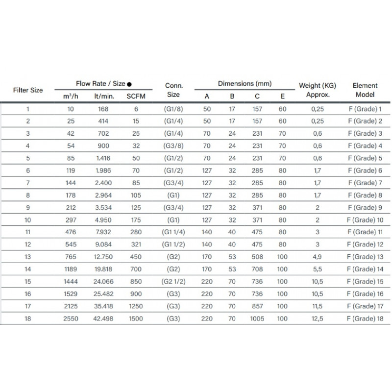 Performanță stabilă a presiunii: Menține o cădere de presiune inițială scăzută de doar 0,155 bar în aplicații uscate, asigurând pierderi minime de energie în timpul procesului de filtrare. Construit pentru a rezista la o presiune maximă a aerului comprimat la intrare de până la 20,7 bar(g), oferind o siguranță sporită pentru sistemele industriale.